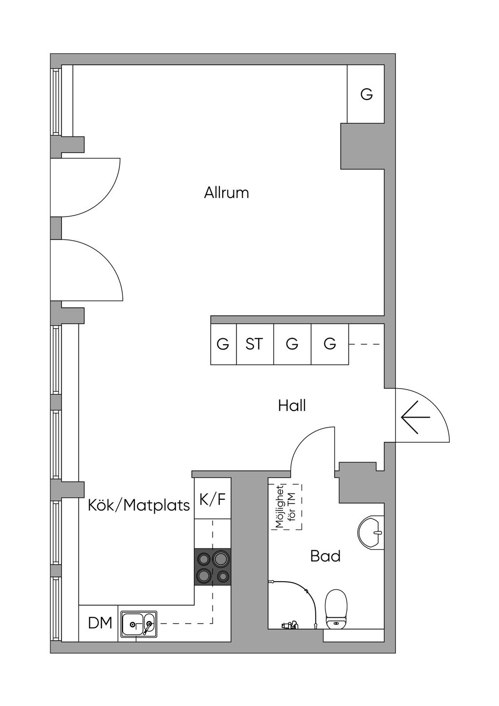 Yteffektiv och ljus etta om 39 kvm - säljaren var först med att välja den på ritning!