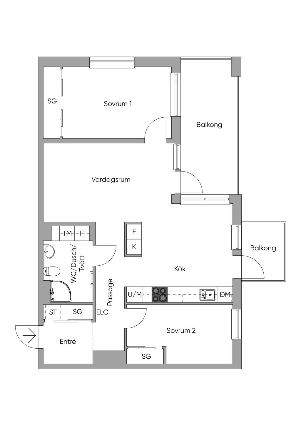 • Rum: 3, varav 2 sovrum