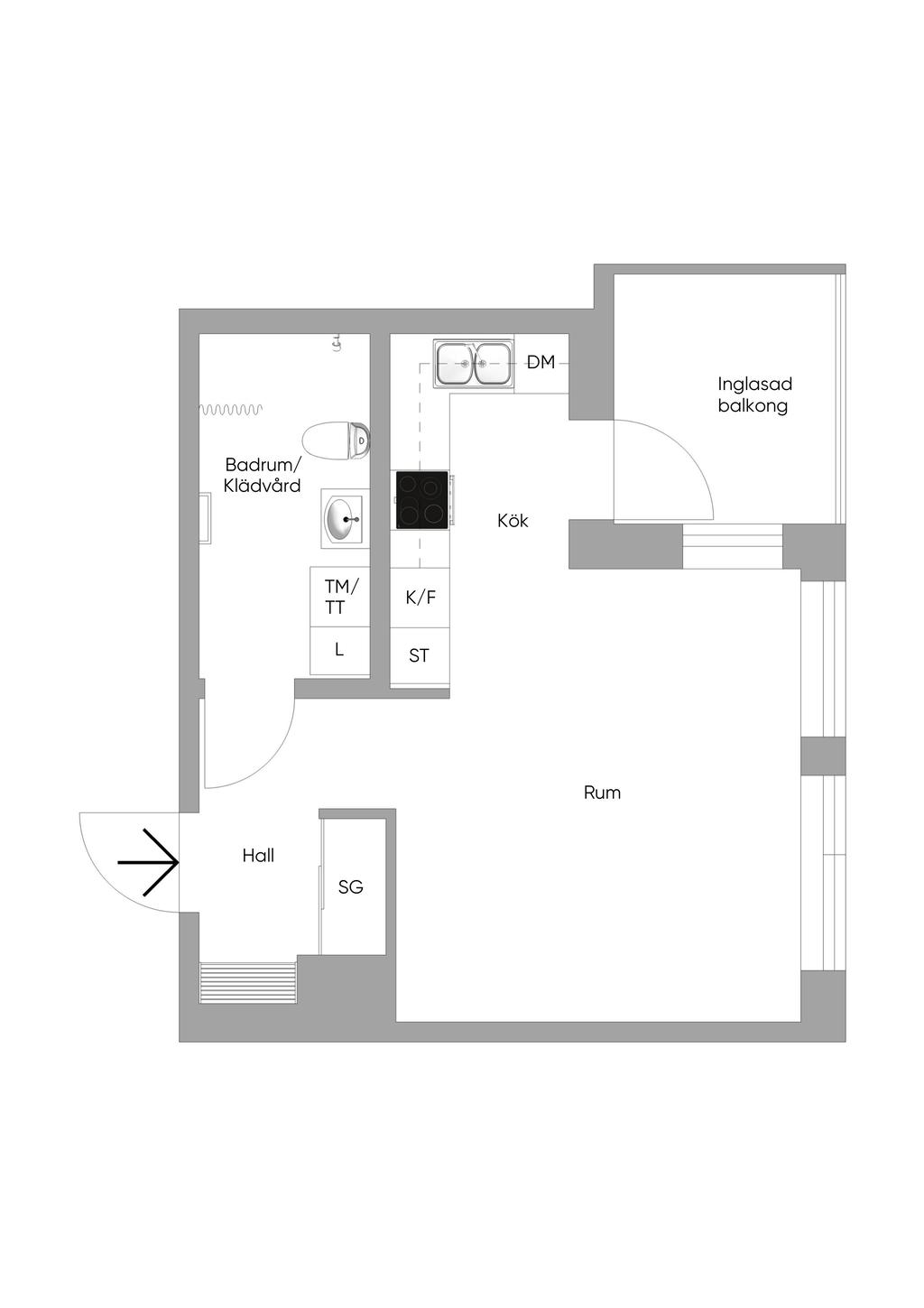 Modern etta med solig inglasad balkong!
