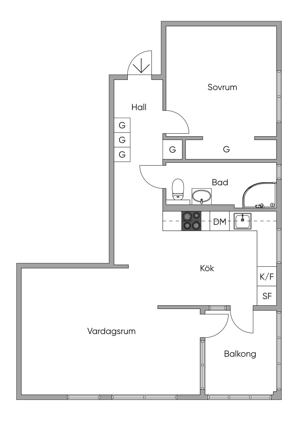 Stor tvåa med generösa ytor och inglasad balkong!