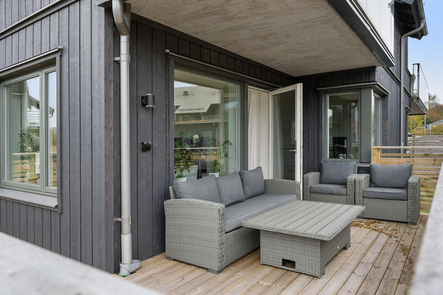 Stenkast från havet med båtliv och badplats! Villakänsla med uteplats.