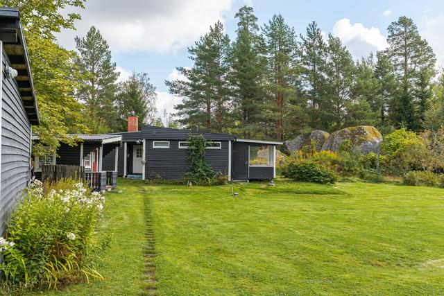 Charmig stuga med naturnära läge, generös tomt och närhet till bad och fiske