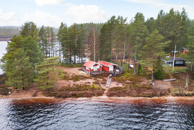 Magiskt fina stugor längst ut på en udde i Bysjön, Nås.