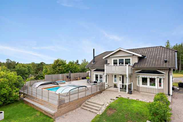 Ett härligt familjehus med pool och gårdsbyggnad i Fjärås Gällinge