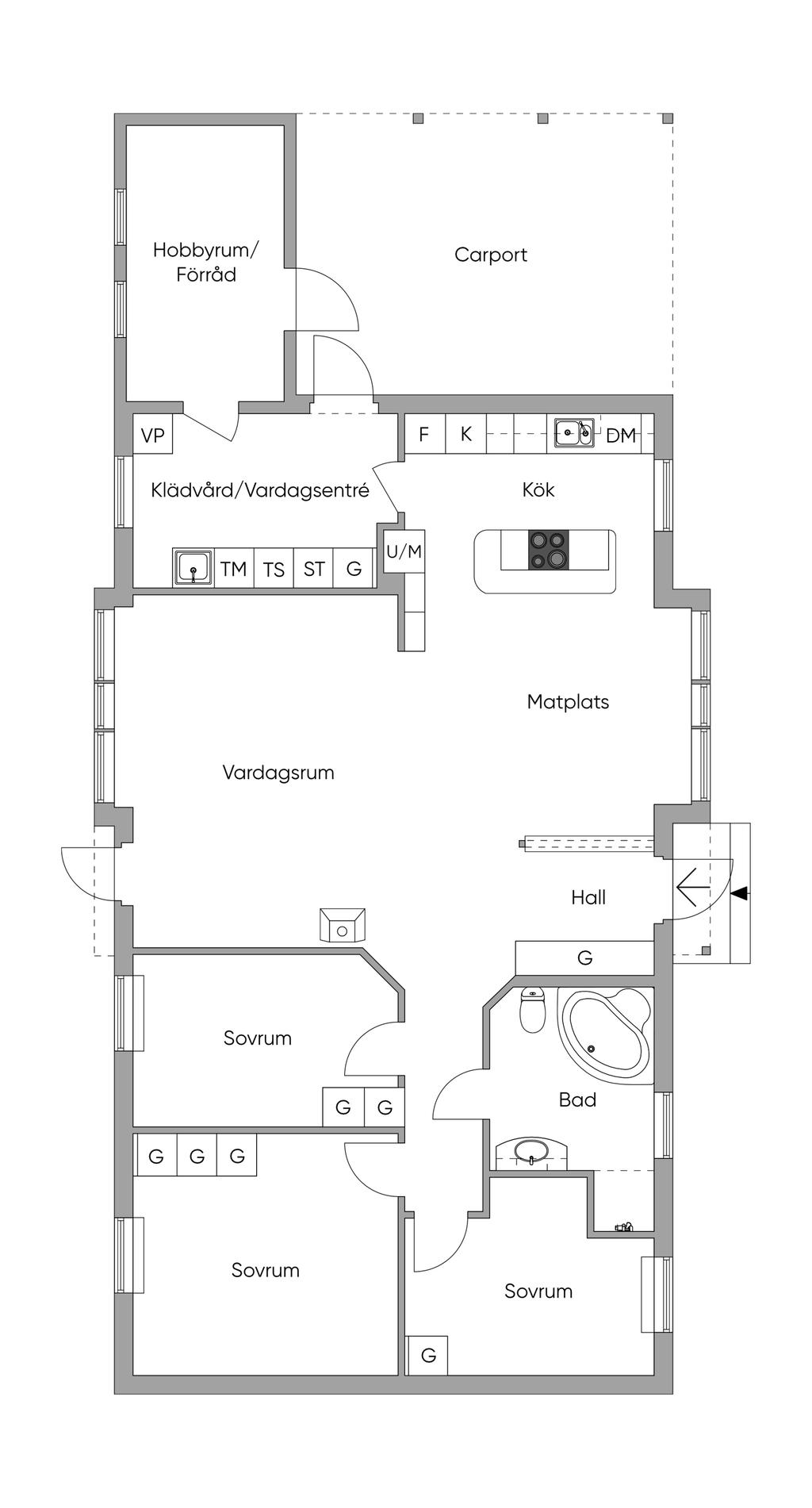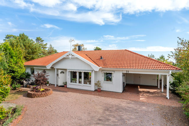 Enplanshus med integrerad carport - sista huset på återvändsgata i havsnära Draget!