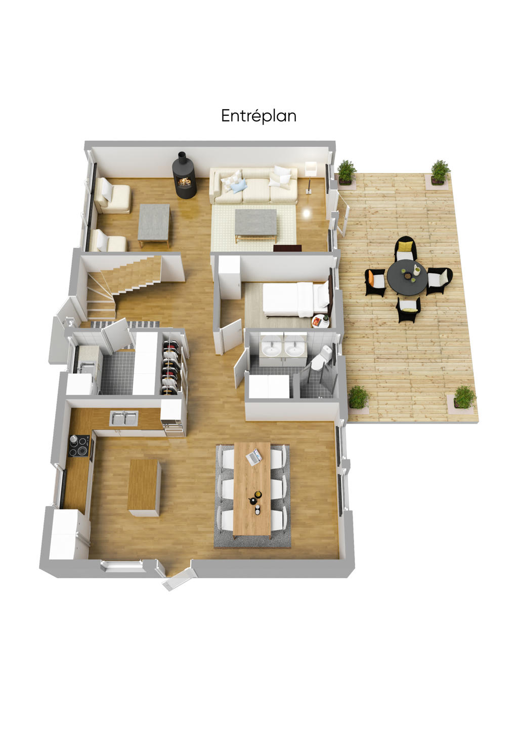 1,5-plansvilla med carport och förråd.