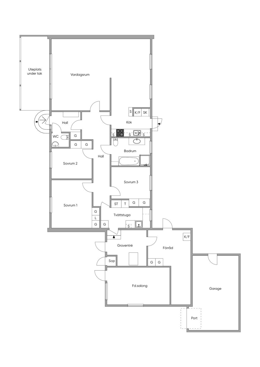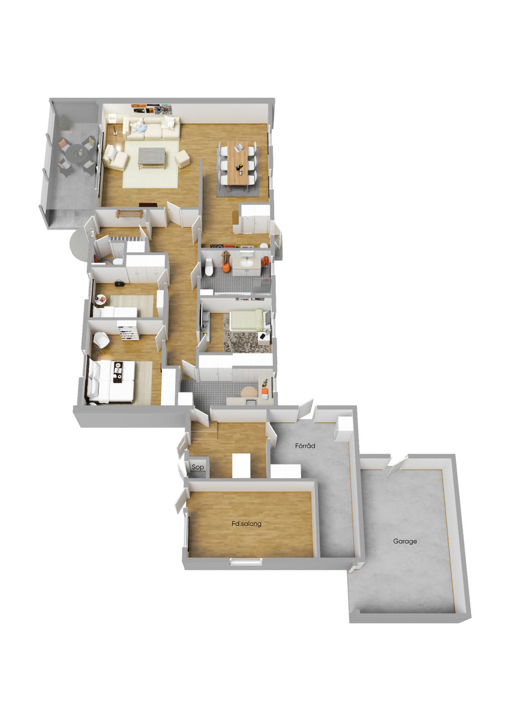 1-plansvilla med vidbyggt garage