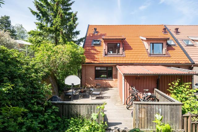 Rymligt och ljust gavelradhus med fyra sovrum, tre uteplatser & fantastiskt läge nära natur och bad!