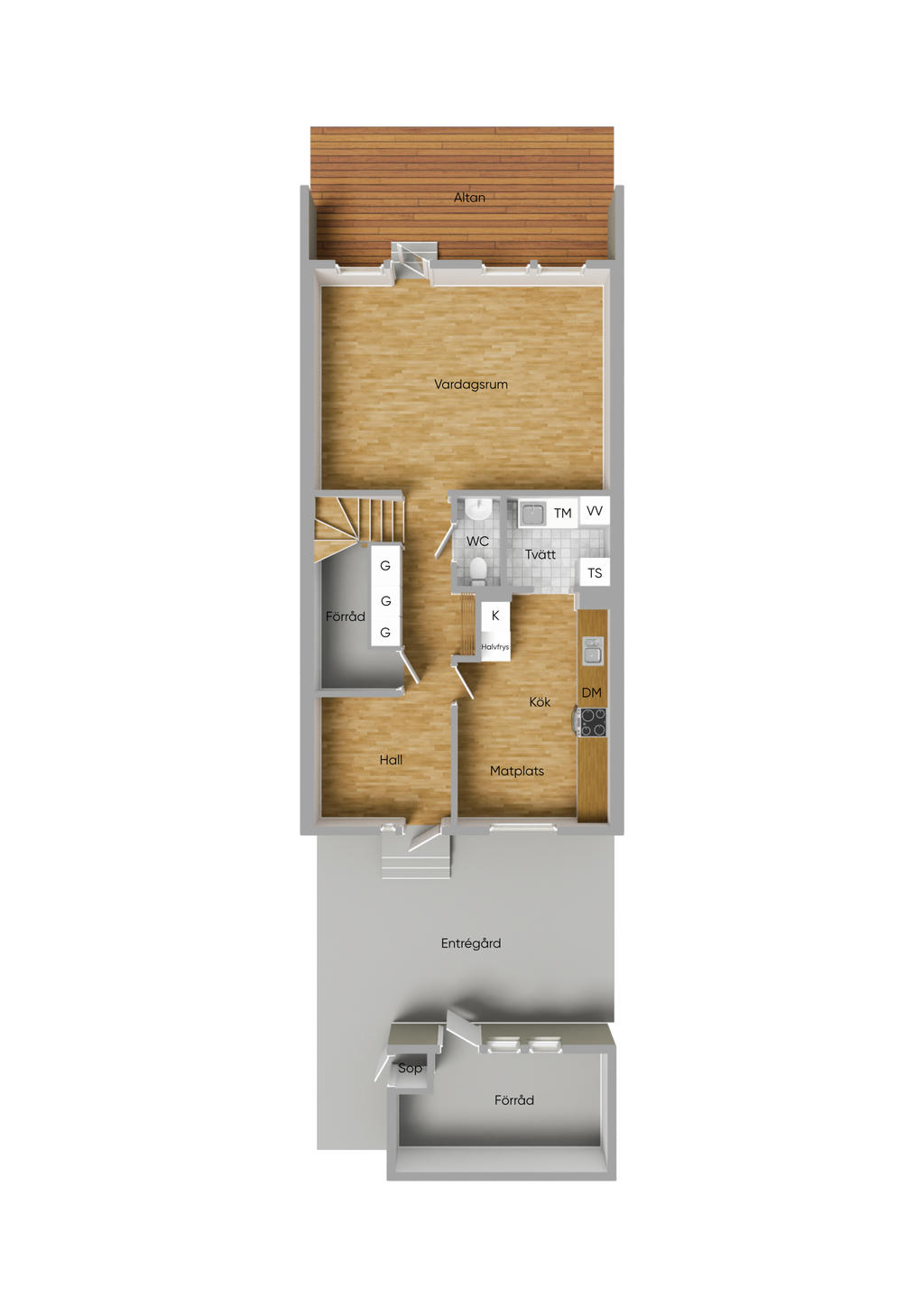 Trivsamt gavelradhus med uteplats i soligt söderläge!