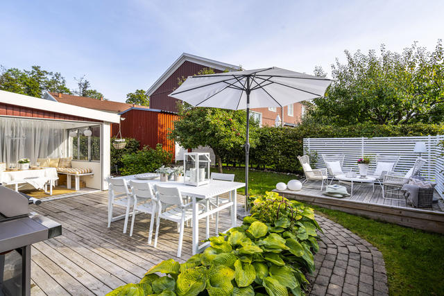 Fantastiskt radhus med härlig hörntomt i populära Farsta Slottsvik!