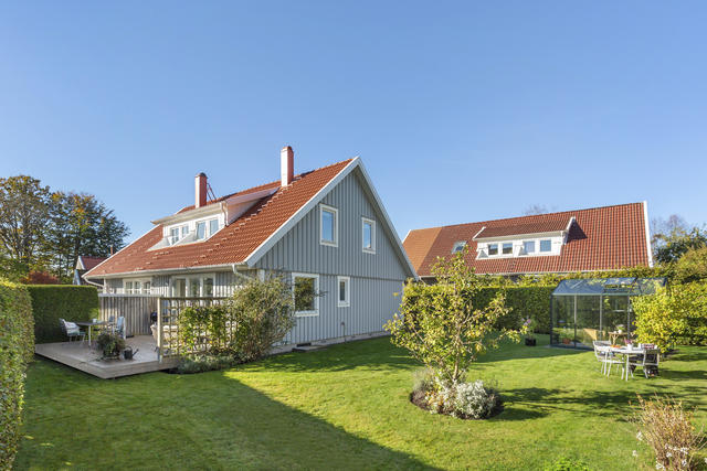 Välskött och hemtrevligt parhus med stor trädgård, växthus och flera uteplatser i hjärtat av Öjersjö