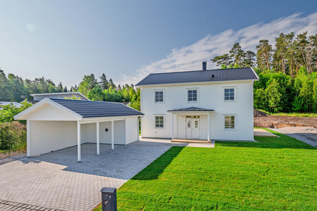 Modern familjevilla från Mjöbäcksvillan med hög standard, solceller och carport