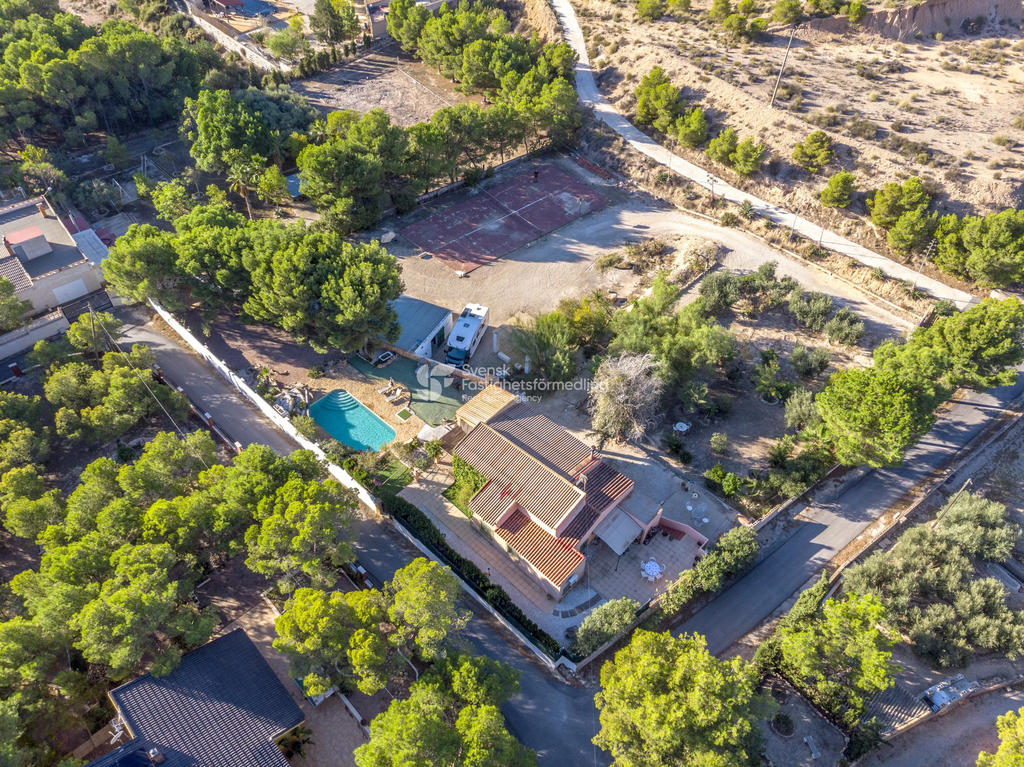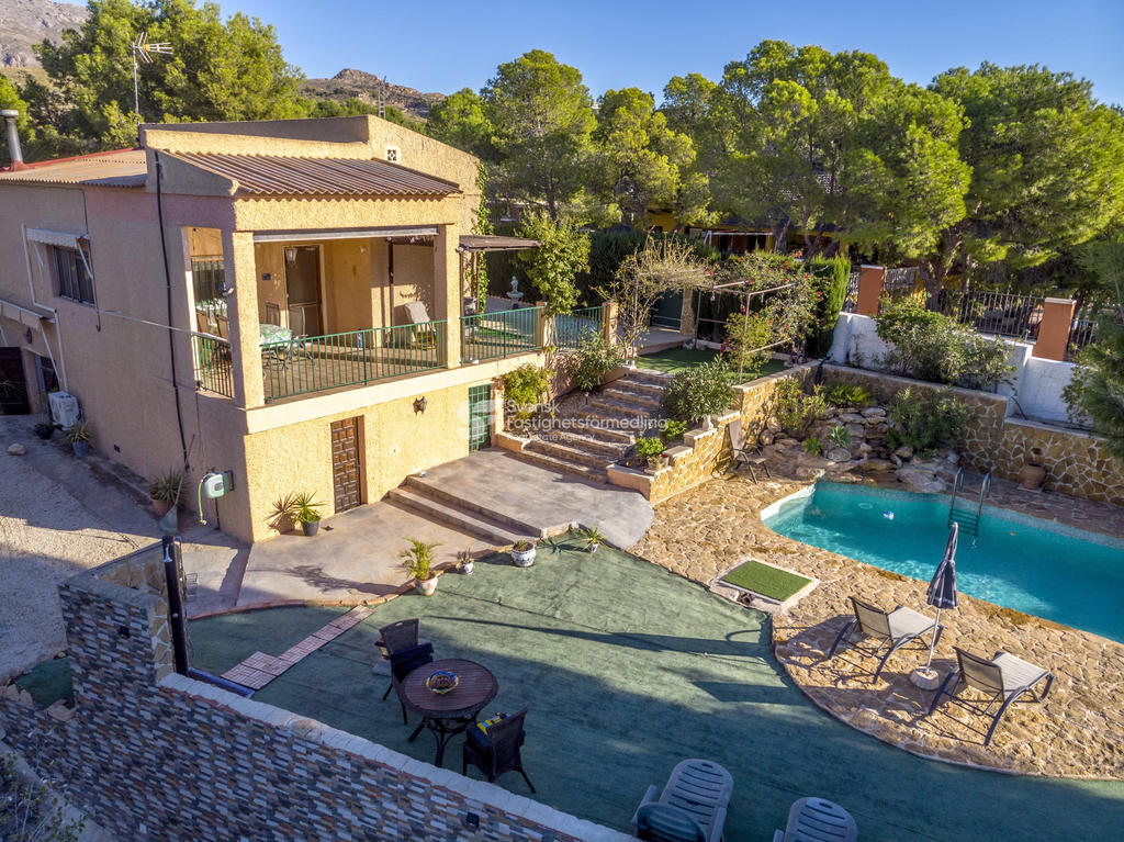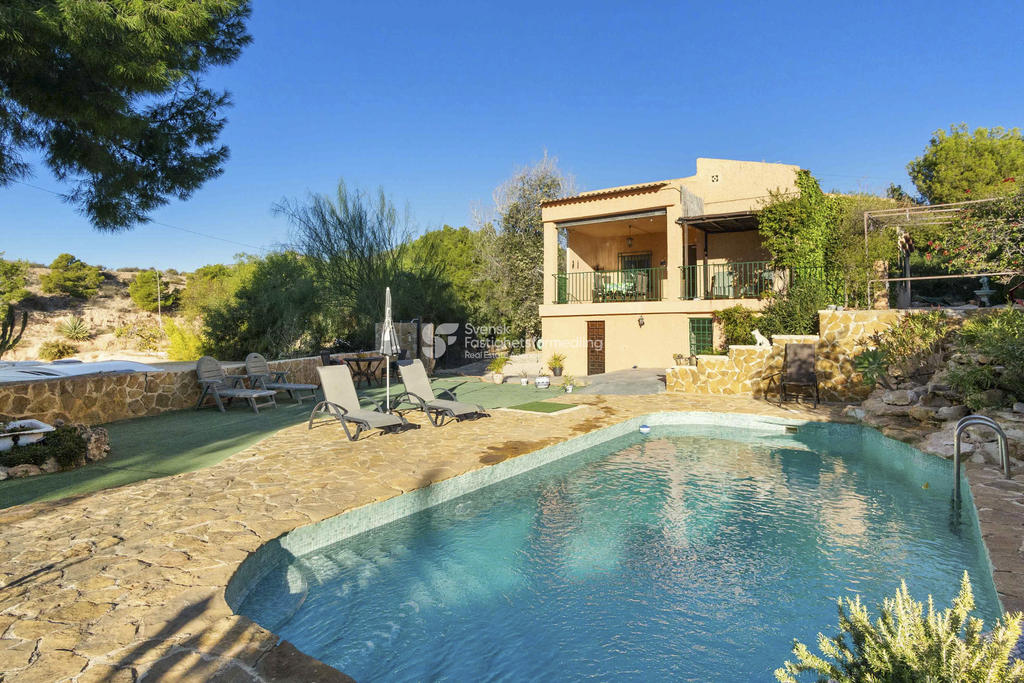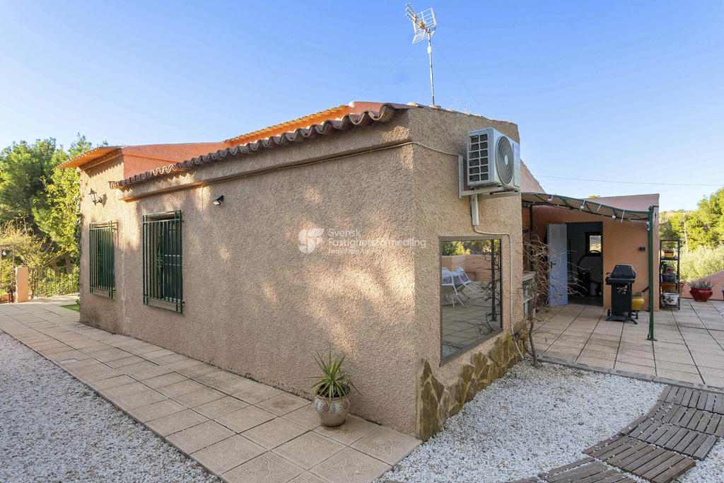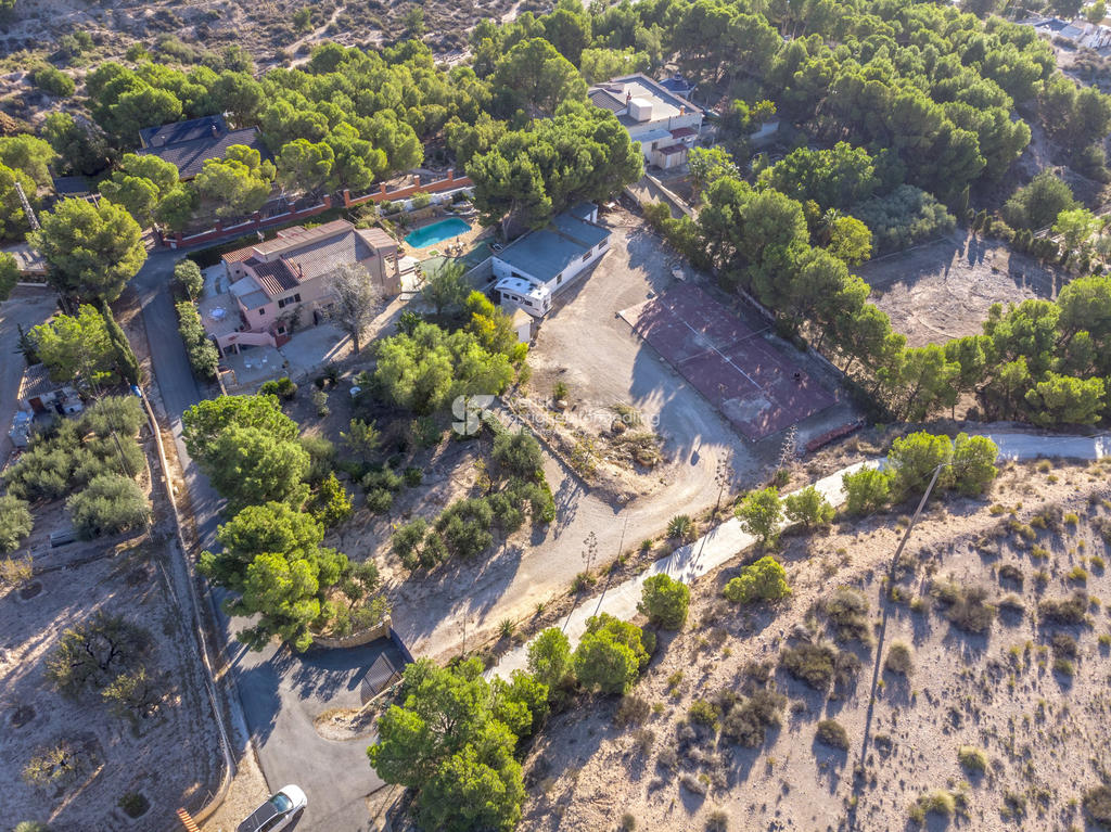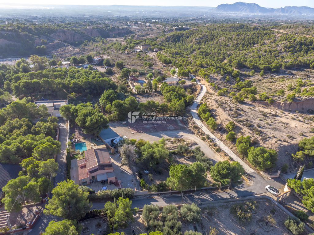 Här erbjuder vi dig en möjlighet till oändliga möjligheter. Bland bergen ca 3km utanför Crevillent (Elche) ligger en nattlåst förening om ca 12 villor med härliga ytor och omgivningar. På en tomt om ca 3200m2 ligger denna villa med 3 sovrum, 2 badrum, inredd källare och naturligtvis privat pool. Utöver huvudbyggnaden finns den tidigare skofabriken som numera är ombyggd till garage. Fastigheten innefattar också en tennisbana (som behöver kärlek) och en ljuvlig park med bland annat apelsin-, citron-, fikon-, oliv- och granatäppleträd.