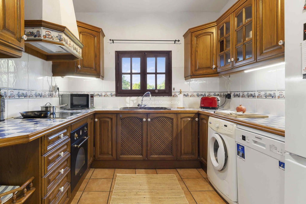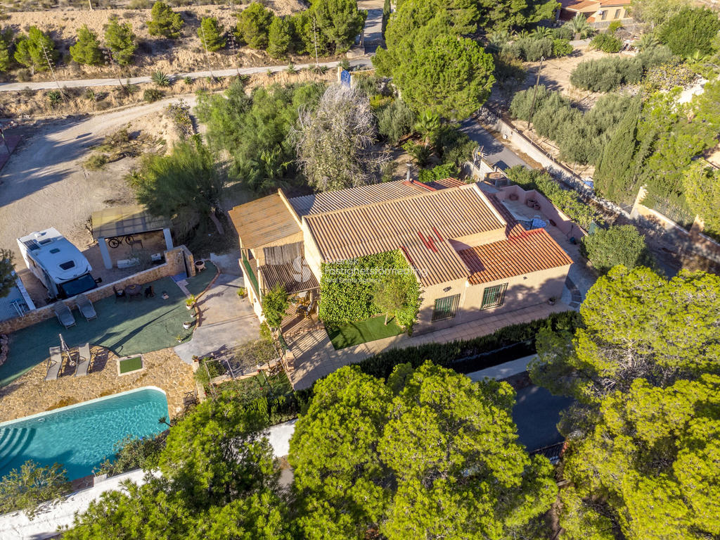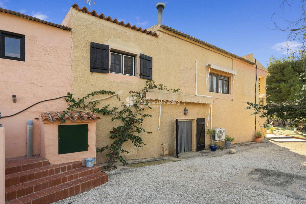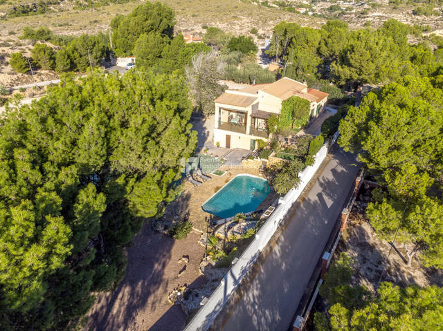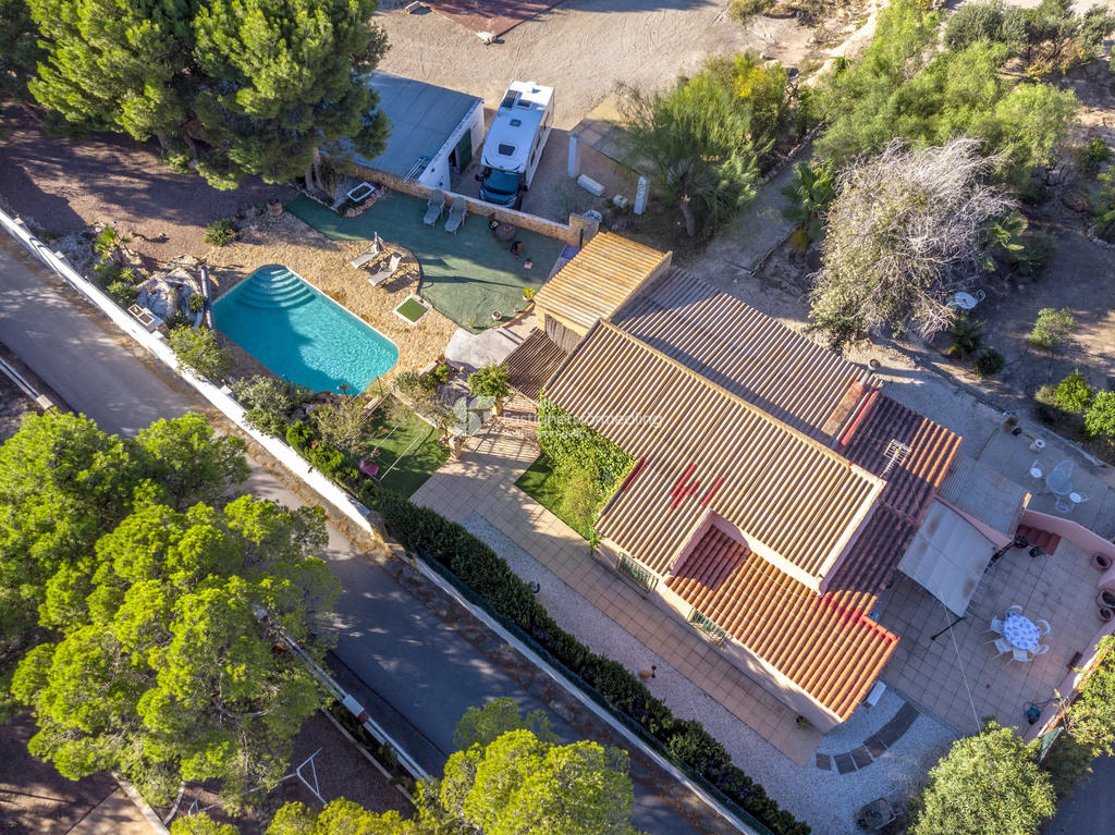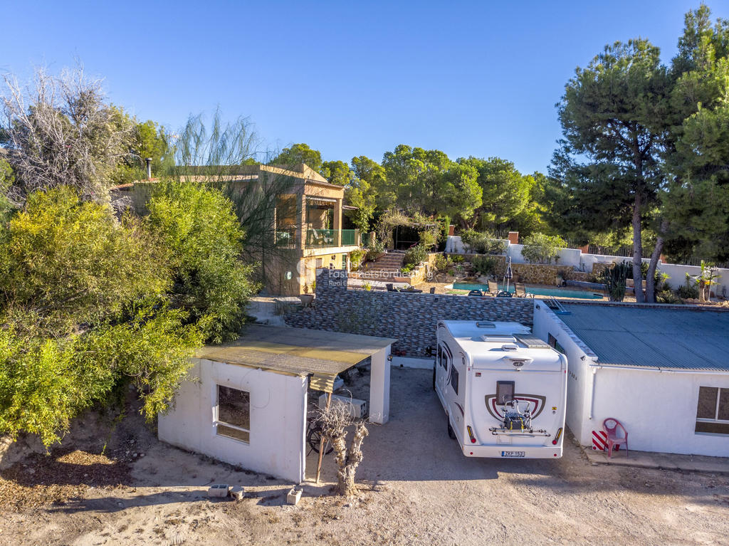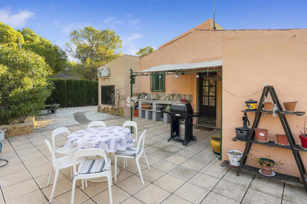 Här erbjuder vi dig en möjlighet till oändliga möjligheter. Bland bergen ca 3km utanför Crevillent (Elche) ligger en nattlåst förening om ca 12 villor med härliga ytor och omgivningar. På en tomt om ca 3200m2 ligger denna villa med 3 sovrum, 2 badrum, inredd källare och naturligtvis privat pool. Utöver huvudbyggnaden finns den tidigare skofabriken som numera är ombyggd till garage. Fastigheten innefattar också en tennisbana (som behöver kärlek) och en ljuvlig park med bland annat apelsin-, citron-, fikon-, oliv- och granatäppleträd.