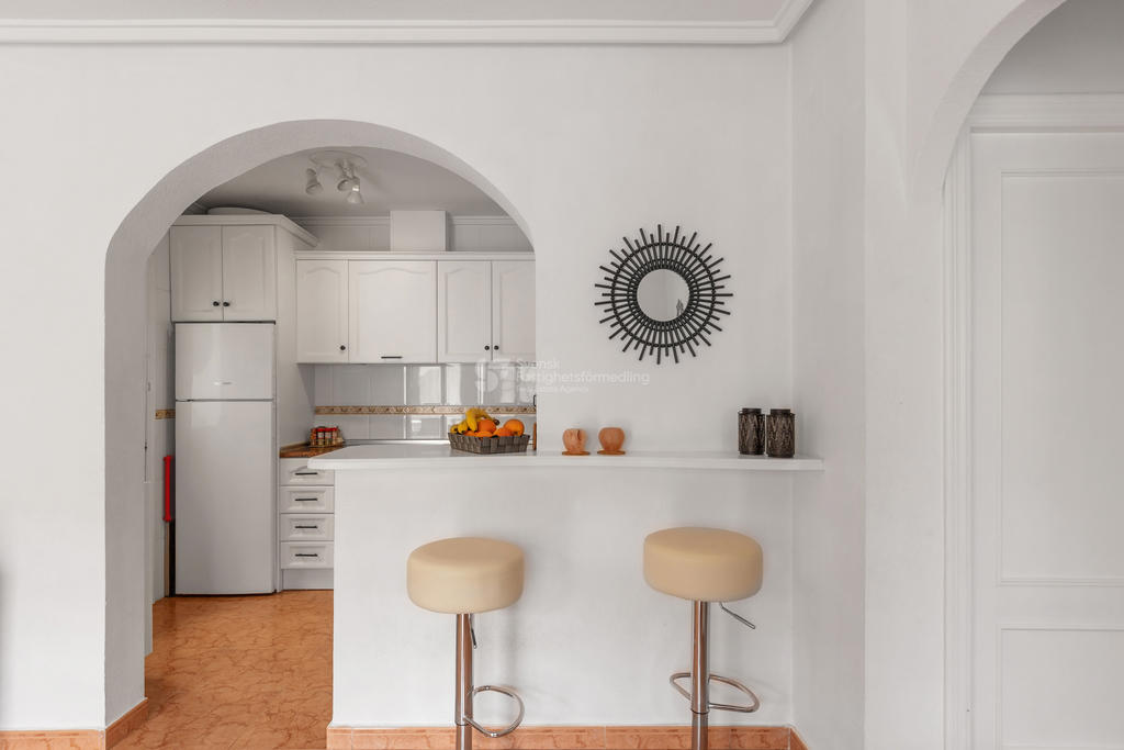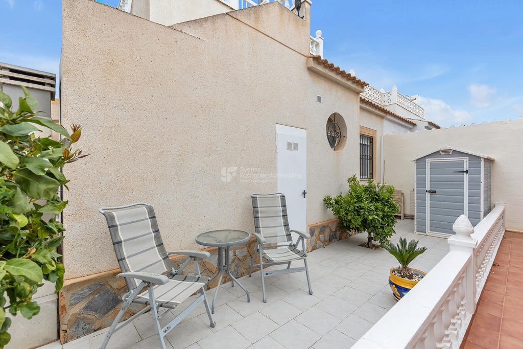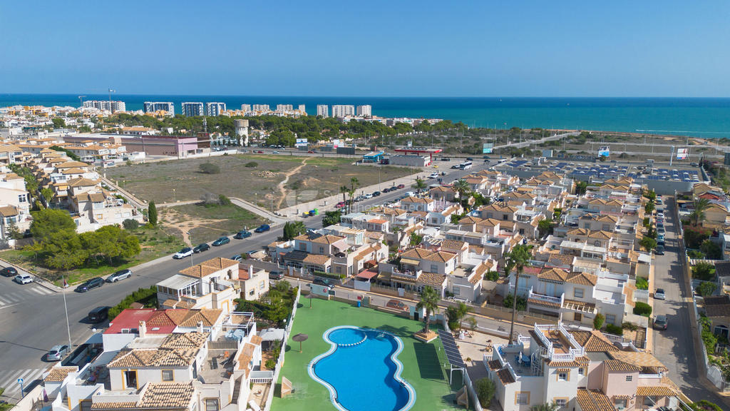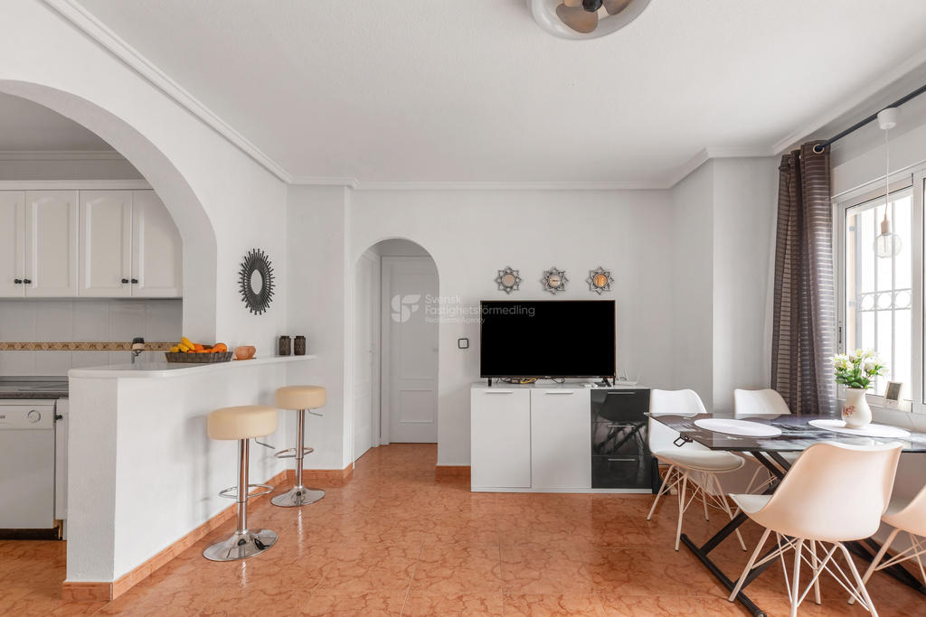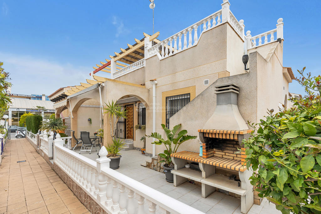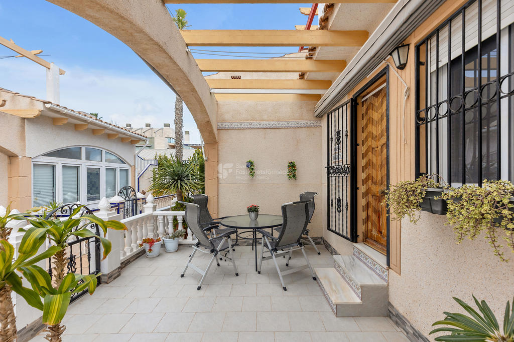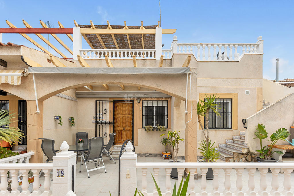 I ett av de mest eftertraktade områdena på Orihuela Costa, bara ett stenkast från International Shop Costa Blanca och med liv och rörelse året om, finner du detta inbjudande hörnradhus – perfekt för både permanentboende och semesterliv.