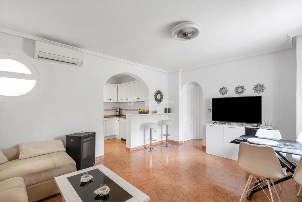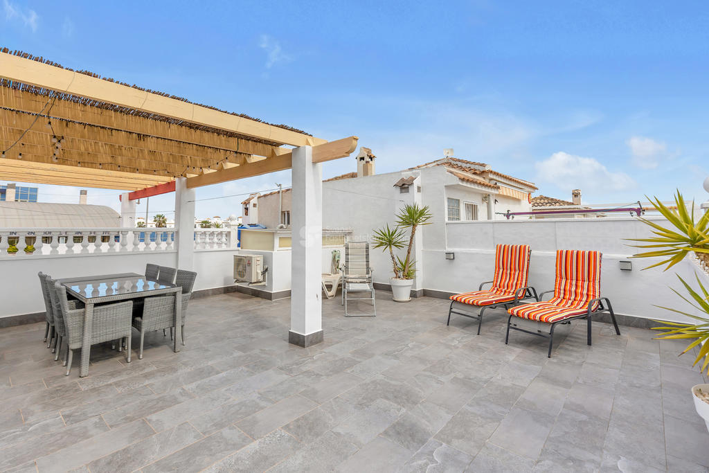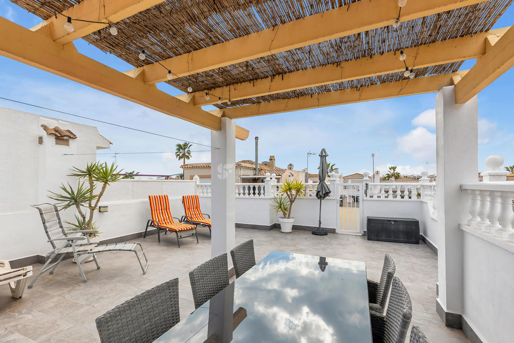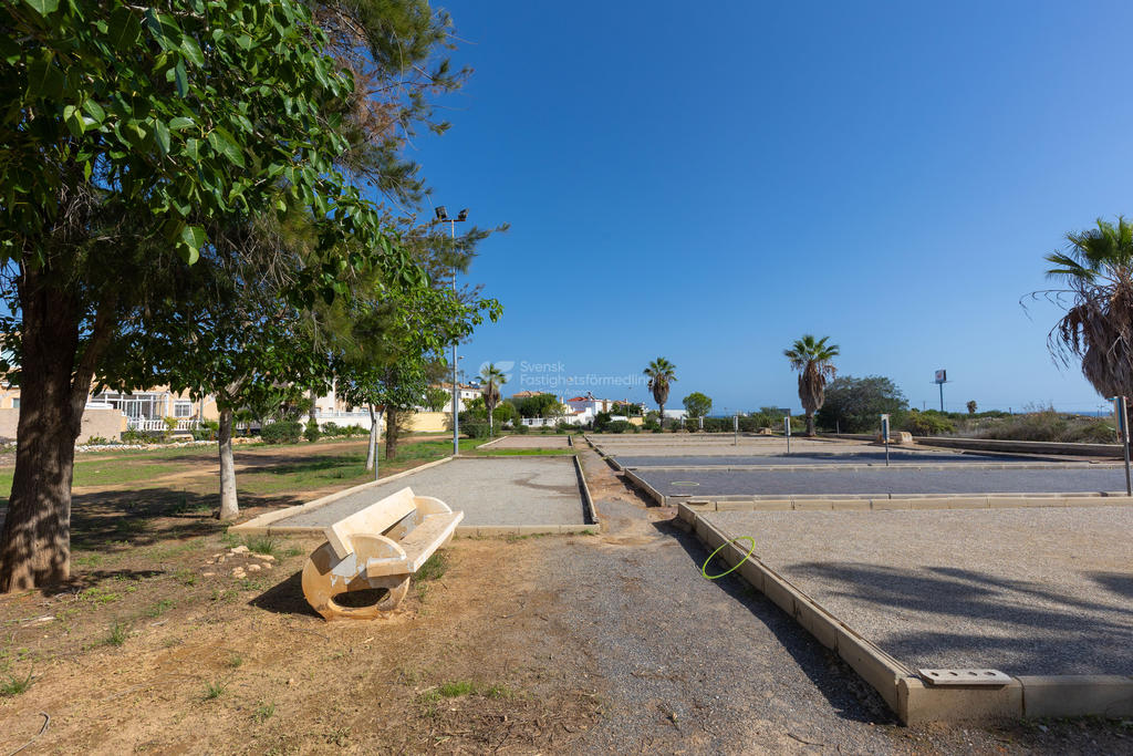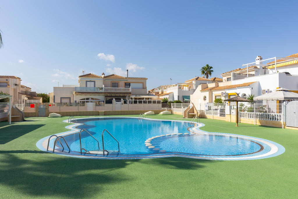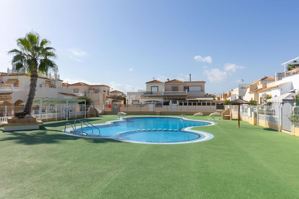 I ett av de mest eftertraktade områdena på Orihuela Costa, bara ett stenkast från International Shop Costa Blanca och med liv och rörelse året om, finner du detta inbjudande hörnradhus – perfekt för både permanentboende och semesterliv.