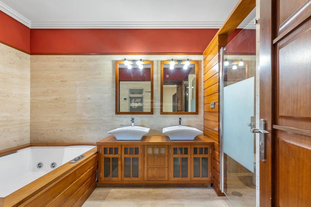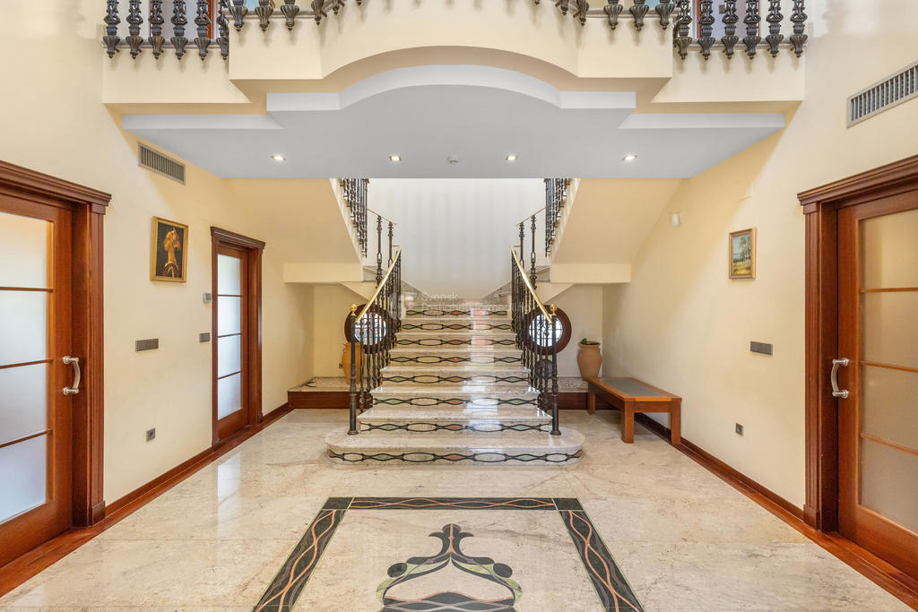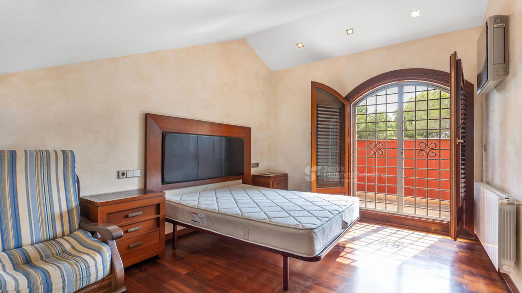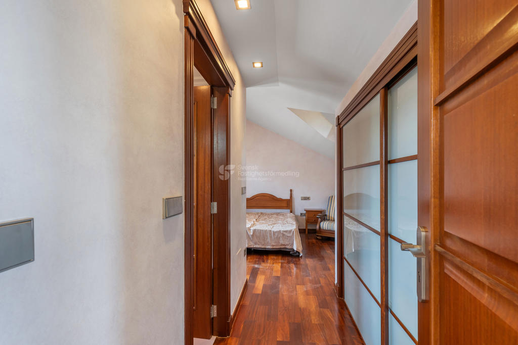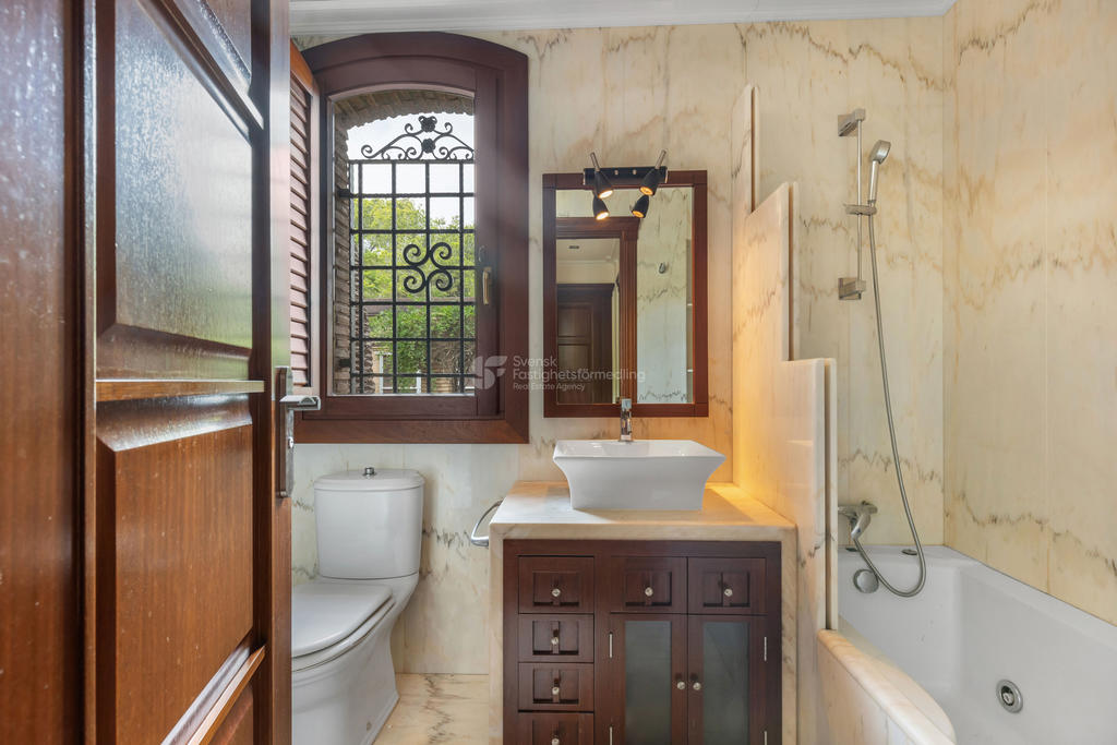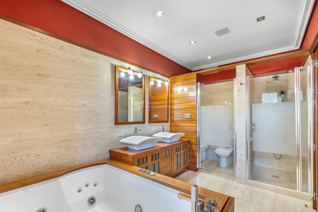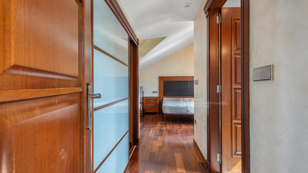 En bostad utöver det vanliga. Villan sträcker sig över tre välplanerade våningsplan och erbjuder en genomtänkt balans mellan sociala ytor och privata rum. Med sina fem rymliga sovrum och fem elegant inredda badrum finns det gott om plats för både familj och gäster. Bostadens master suite är en privat tillflyktsort med en jacuzzi och en rymlig walk-in closet. På markplan finner du ljusa och öppna sällskapsrum med en sömlös övergång till den magnifika trädgården, medan det imponerande källarplanet rymmer ett stort garage med plats för flertalet fordon samt en sauna för ultimat avkoppling.
