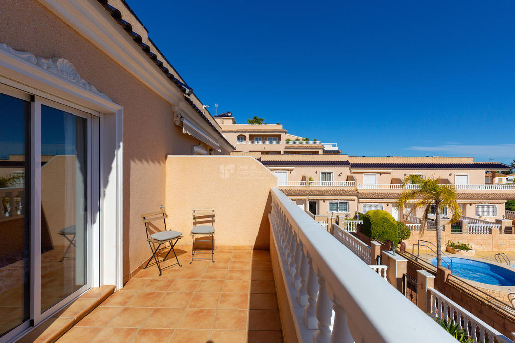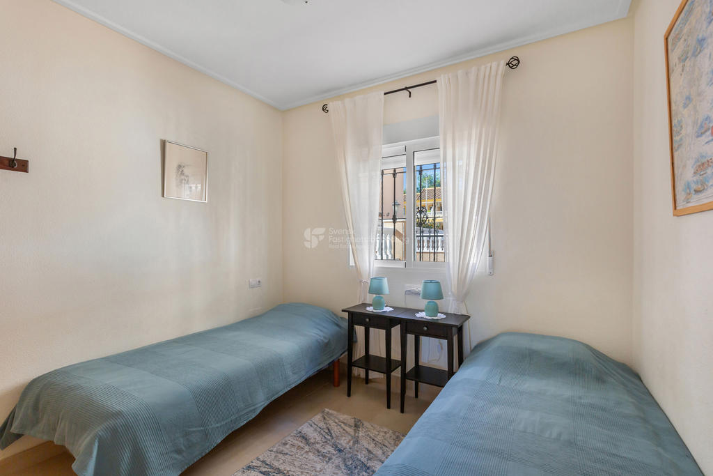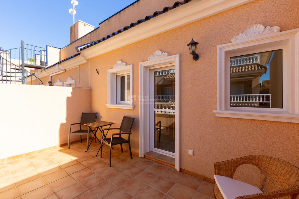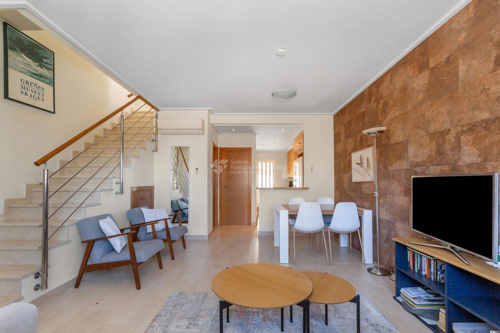 I omtyckta Villamartin Orihuela Costa strax söder om Torrevieja erbjuder vi nu detta välplanerade och stilfulla radhus med ett mycket attraktivt läge. Bostaden disponeras över två sovrum och två badrum, båda utrustade med dusch. Radhuset lämpar sig utmärkt både som permanentboende och som semesterbostad.