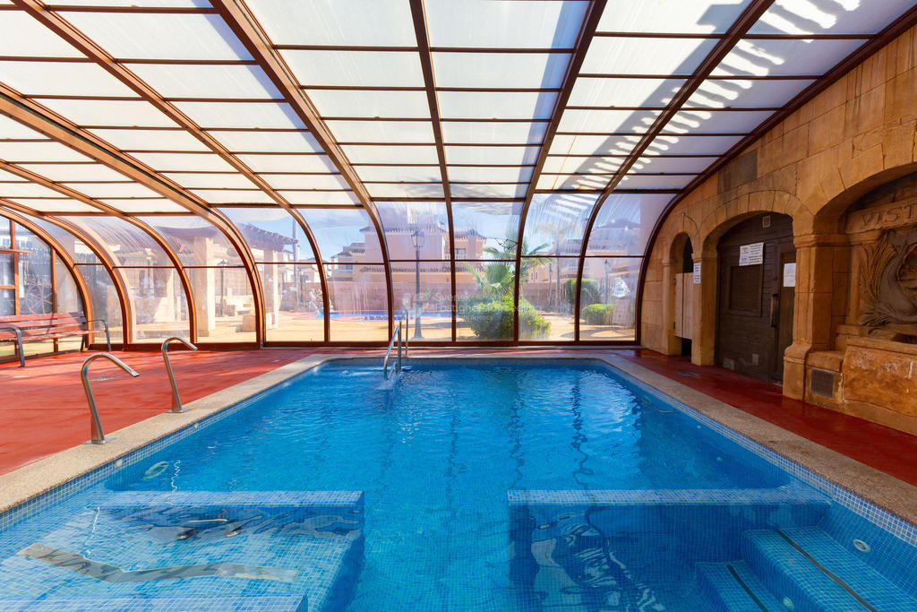 I det välskötta bostadsområdet finns två inbjudande utomhuspooler samt en vinteruppvärmd inomhuspool, vilket gör boendet extra attraktivt under vinterhalvåret.