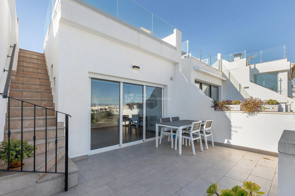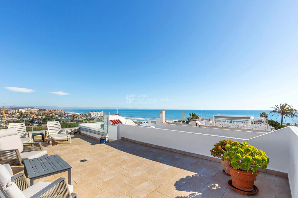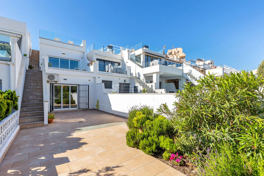 Detta är ett hem för dig som älskar uteplatser, havsutsikt och ett liv i solen. Ett stilfullt och inbjudande radhus med fyra generösa uteplatser, där varje yta är skapad för att maximera livskvaliteten – endast cirka 200 meter från stranden.