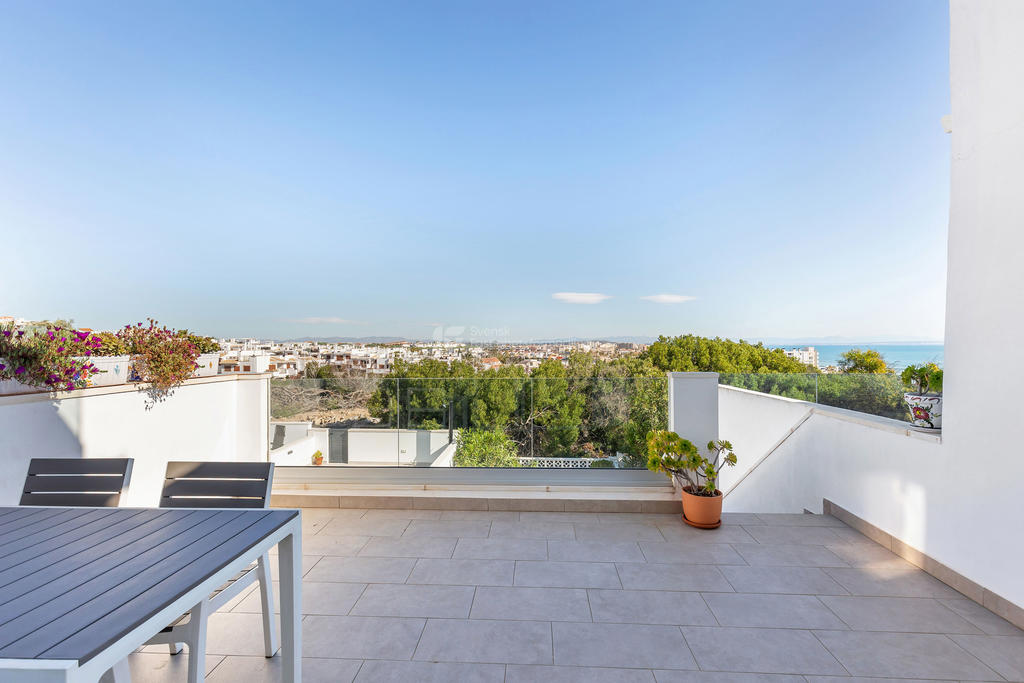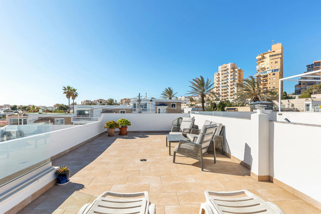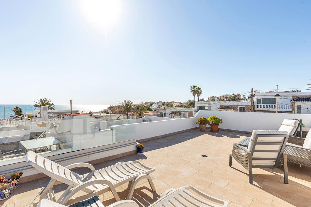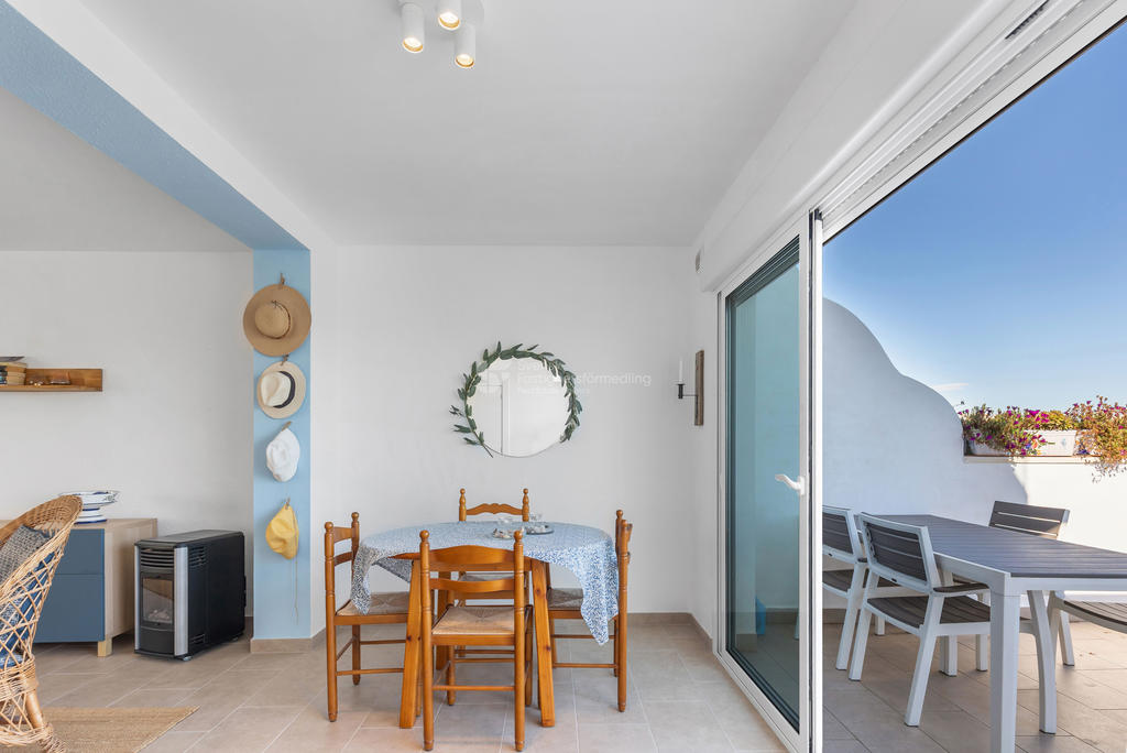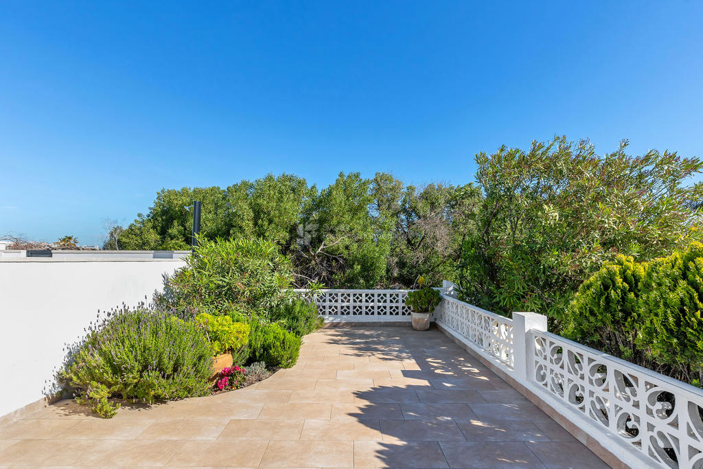 Här suddas gränsen mellan inne och ute ut. På entréplan finns två härliga markaltaner, både på fram- och baksidan, där du kan njuta av solen från morgon till kväll. Utöver detta finns en balkong samt en imponerande takterrass med vidsträckt havsutsikt – en självklar plats för långa middagar, avkoppling och oförglömliga solnedgångar.