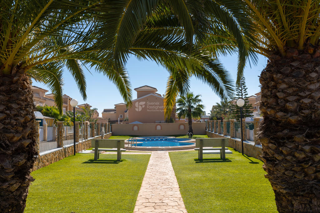 I urbanisationen finns ett vackert grönskande poolområde – en lugn oas med välskötta gemensamma ytor som passar både stora och små.
