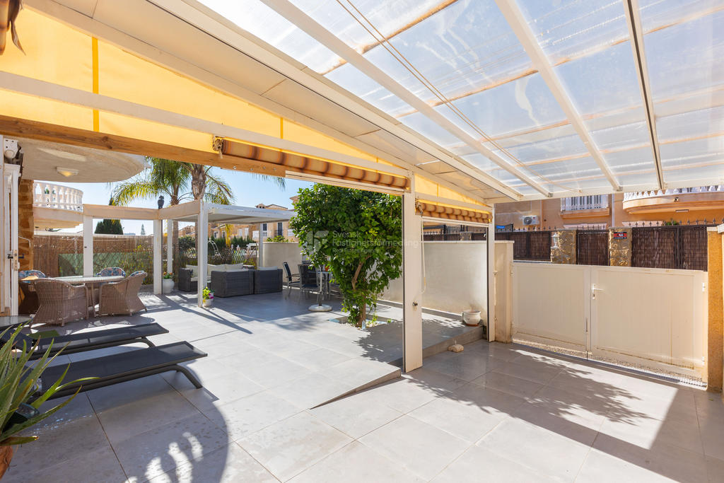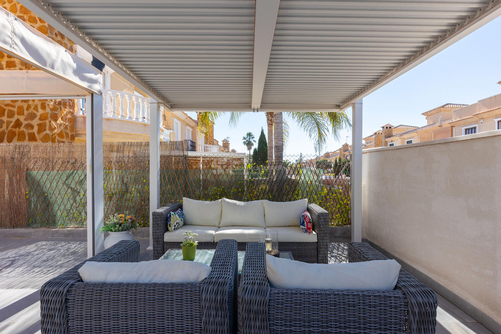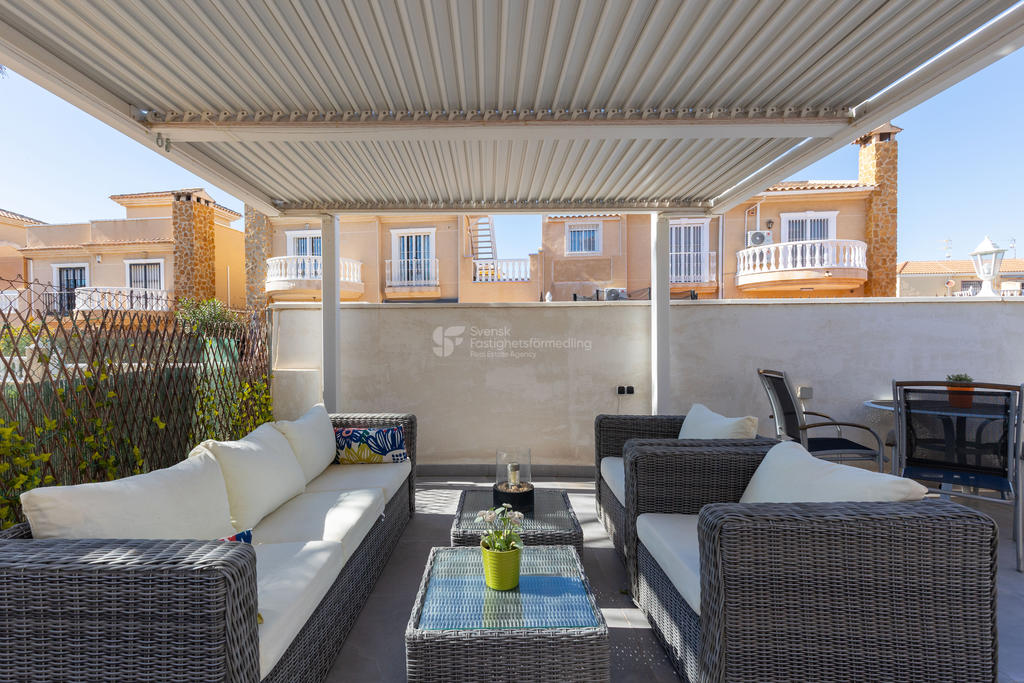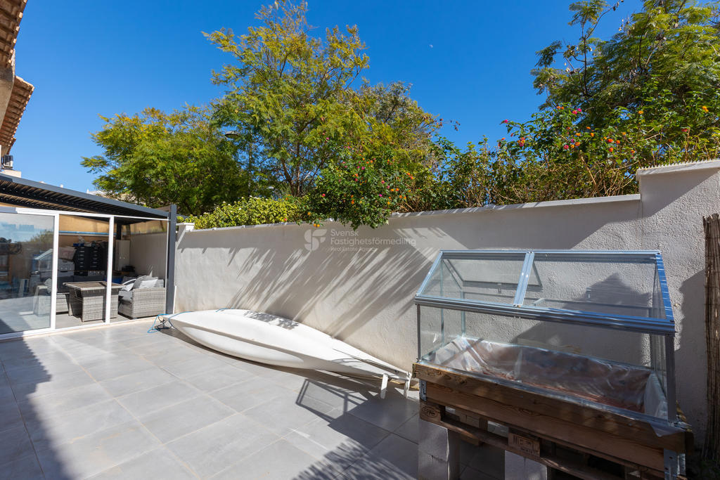 Tomten erbjuder flera fina miljöer för avkoppling och sociala stunder, med carport, uterum och pergola som ger både skugga och charm. De soliga uteplatserna gör det enkelt att leva det spanska utelivet året runt.