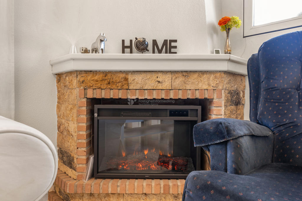 Huset är dessutom utrustat med 12 installerade solpaneler, vilket ger lägre driftskostnader och ett mer energieffektivt boende. Tillsammans med 3 AC för varm och kallluft i vardagsrum, nedre sovrum och på ovanvåningen blir inomhusklimatet mycket behagligt.