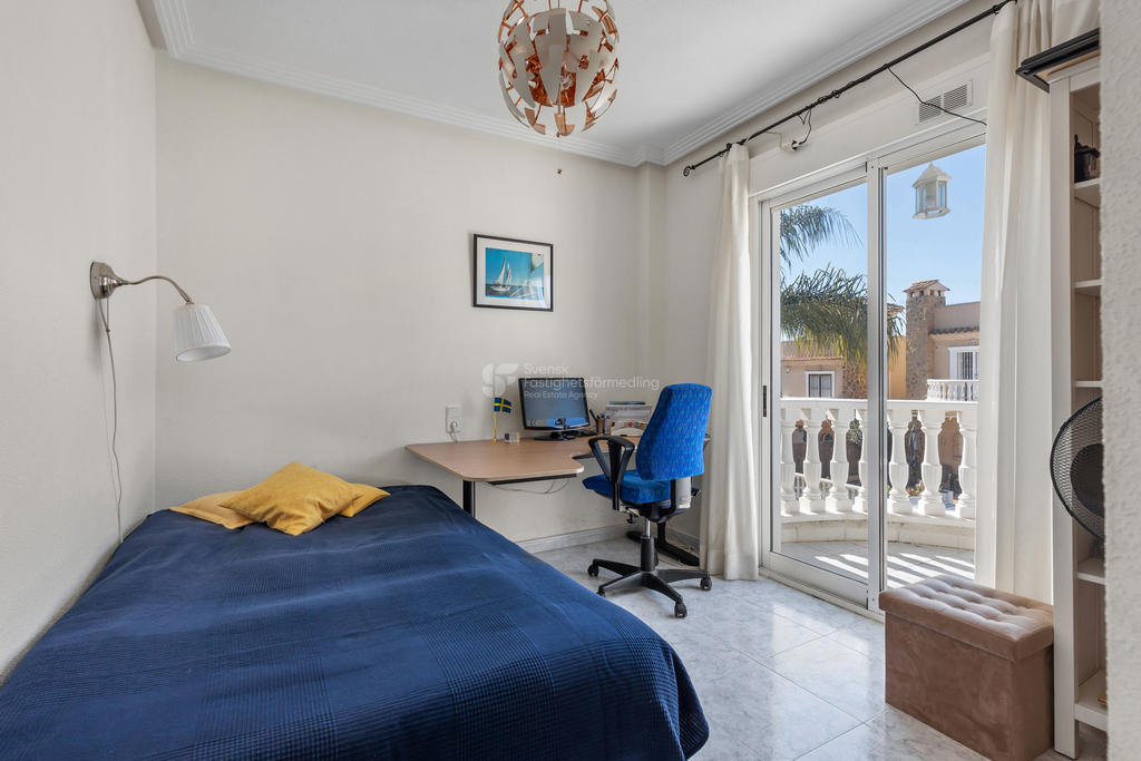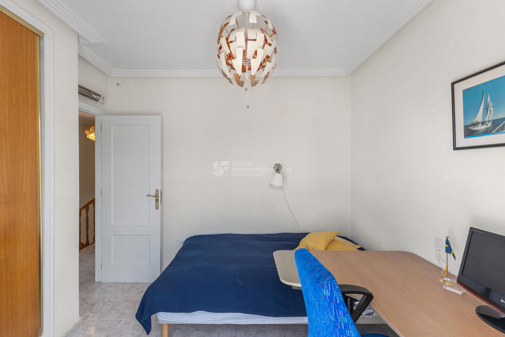 På ovanvåningen finns ytterligare två sovrum och ett badrum. Från detta plan når du även en trevlig terrass samt en balkong där du kan njuta av eftermiddagssolen.