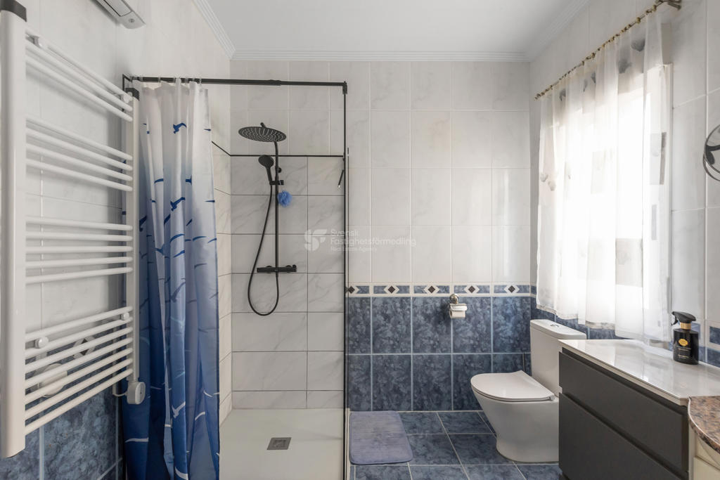 Huvudbyggnaden rymmer ytterligare två luftiga sovrum med inbyggda garderober samt ett modernt badrum med dusch.