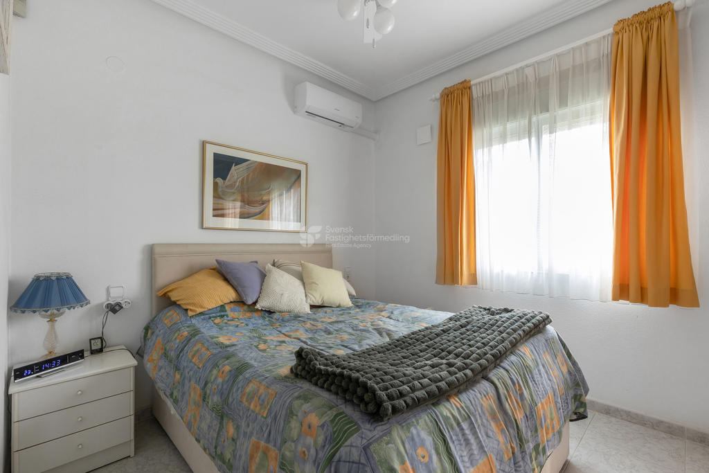 Välkommen till denna trivsamma och välskötta villa med tre rymliga sovrum, belägen på en insynsskyddad tomt i det lugna trevliga området, La Siesta i Torrevieja. Här bor du bekvämt med egen parkering, en stor uppvärmd saltvattenpool och en vackert anlagd trädgård med flera härliga platser för sol och skugga under hela dagen. Stor solig takterrass med vacker utsikt över området och saltsjön. Allt bara några minuter från trevliga sociala områden och restauranger.