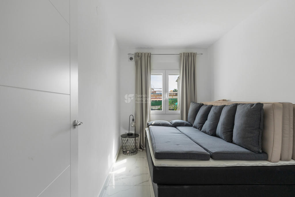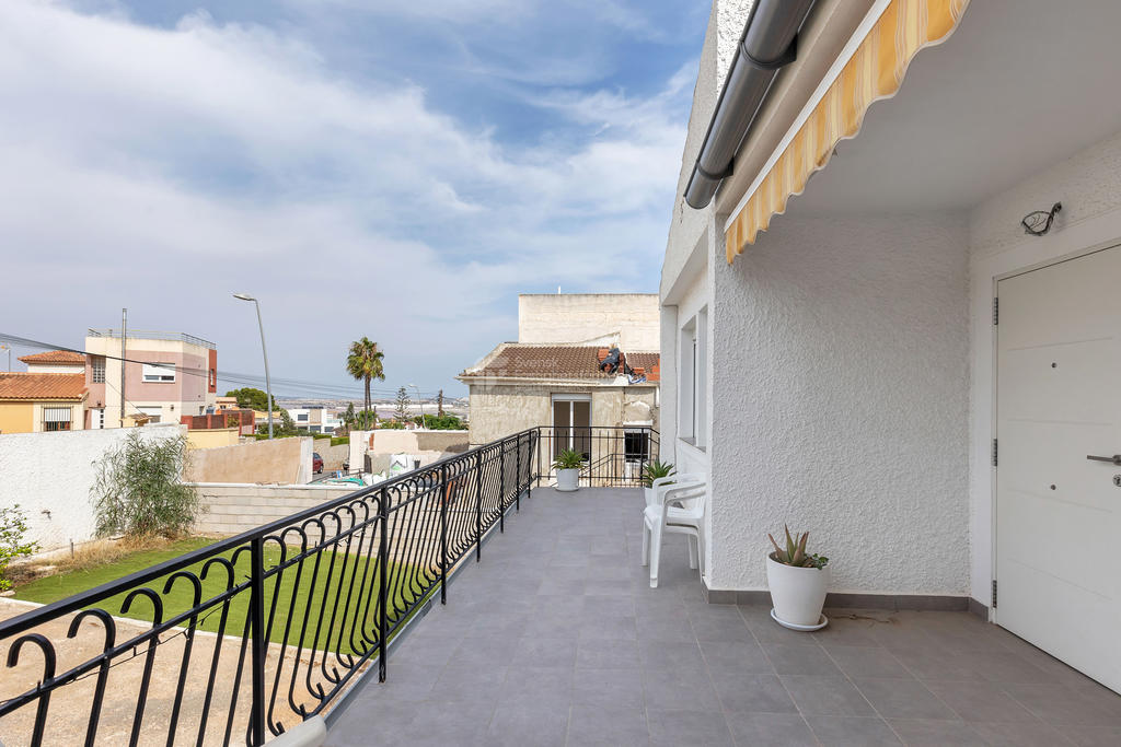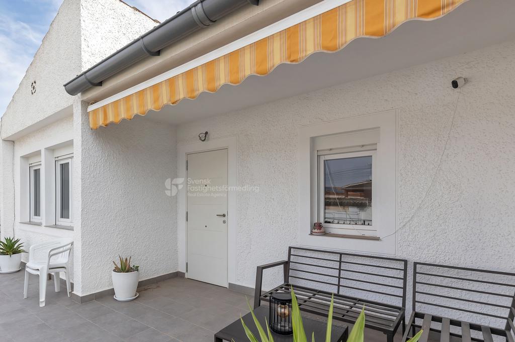 Välkommen till ett hem som verkligen har allt – stil, komfort och smarta lösningar! I det eftertraktade området Los Balcones, strax utanför Torrevieja, hittar du detta totalrenoverade parhus på en generös tomt över 550 m² med utmärkta möjligheter att bygga din drömpool. Här bor du med villakänsla, moderna bekvämligheter och gott om plats för hela familjen – eller en möjlighet att skapa en separat uthyrningsdel.