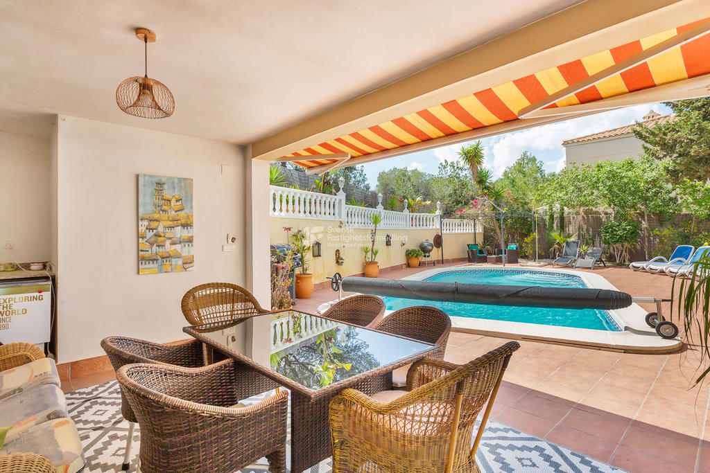 Villan är både ljus och luftigt, med stora och välplanerade ytor som gör den idealisk för både semester boende och åretruntboende. Med modern utrustning och upp till sex sovrum, varav några med egna badrum, finns det gott om plats för familj och vänner. Den trevliga uteplatsen bjuder på många soltimmar, perfekt för att njuta av medelhavsklimatet. På den stora takterrassen har man gott om plats och en fantaksikt utsikt över området och bergen.