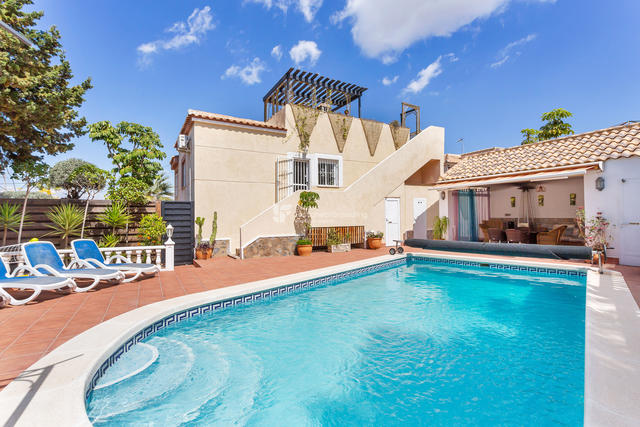 Välkommen till en elegant villa belägen i det charmiga området San Miguel de Salinas. Denna fantastiska bostad erbjuder en perfekt kombination av komfort och stil, med en lummig trädgård, en uppvärmd poolen och jacuzzi – en oas av avkoppling och njutning.