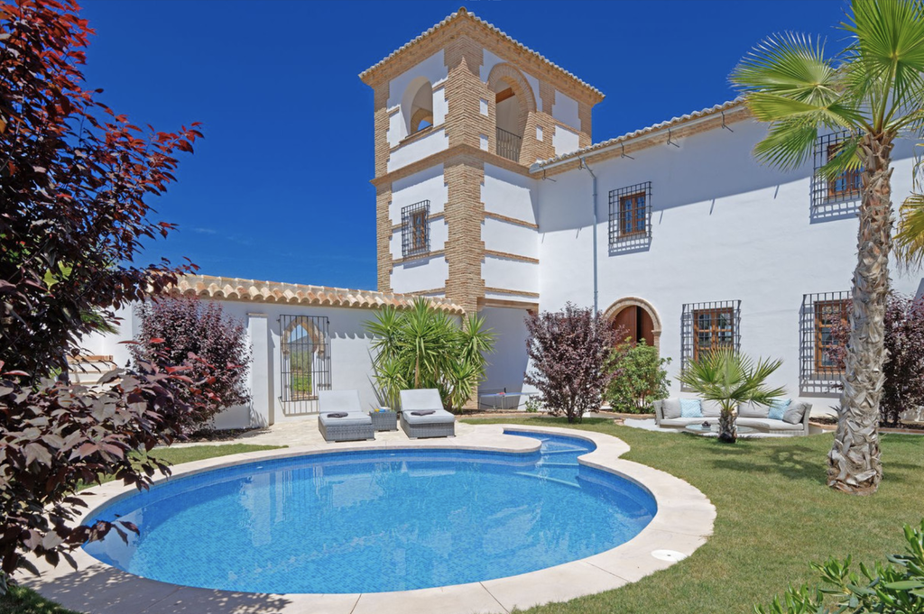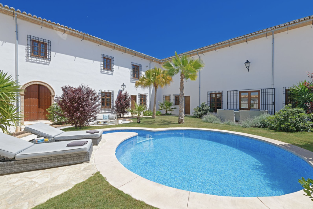 The main residence is arranged around an impressive central courtyard, which forms the heart of the home and creates a strong sense of character and elegance. The exterior features include a large swimming pool, extensive gardens, and generous terraces, ideal for outdoor living, entertaining, and enjoying the Andalusian climate.