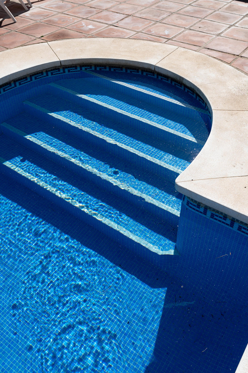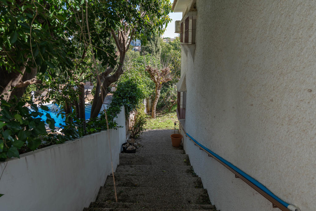 Den egna poolen ramas in av grönska, fruktträd med citroner och apelsiner, olivträd och ett ståtligt ficusträd. Trädgården sätter färg och karaktär. Att plocka sina egna citroner intill poolkanten blir snabbt en del av vardagens lyx. Trappor finns för att underlätta ta sig runt huset utomhusvägen. Det skapar både funktion och frihet.