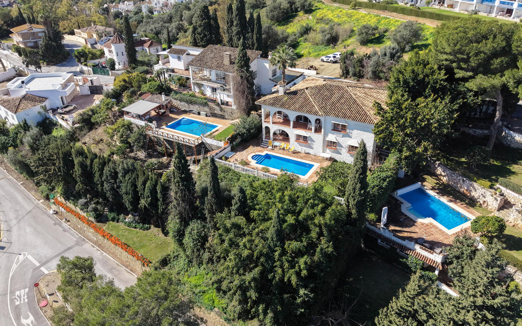 Välkommen till en villa som verkligen berör. I ett rofyllt och naturnära område i Mijas Campo väntar denna underbara tvåplansvilla, ett hem för dig som söker stora ytor, lugn och en utsikt som aldrig slutar imponera. Här bor du lantligt och harmoniskt, omgiven av fågelsång och grönska, men med närhet till både Mijas och Fuengirola samt det glittrande Medelhavet. Kombinationen är svårslagen, frihet, rymd och närhet till allt.