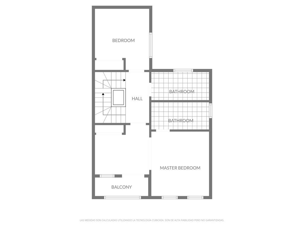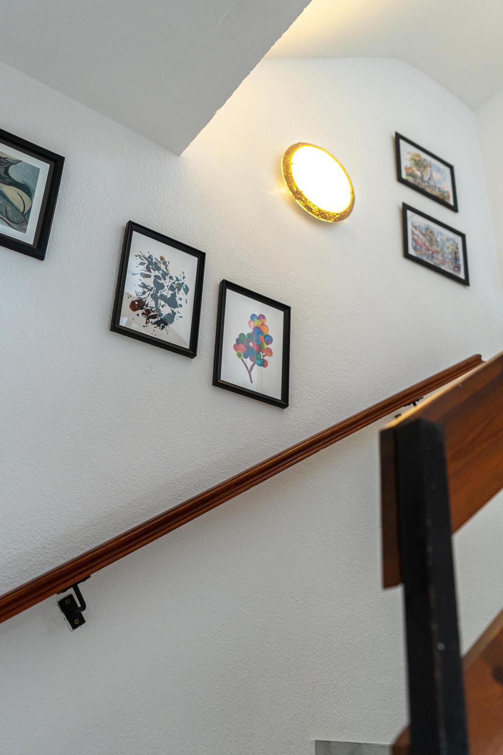 En trappa upp möts du av en mer privat del av bostaden. Här finns två trivsamma sovrum – planlösningen har smart anpassats för att skapa två rum istället för tre, vilket ger flexibilitet och fler möjligheter. Från master bedroom nås en trevlig liten balkong som släpper in ljus och frisk luft. På detta plan finns även två badrum, båda i ljusa materialval.