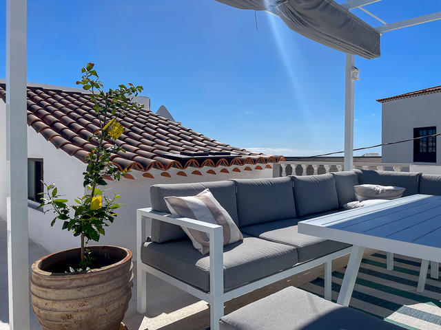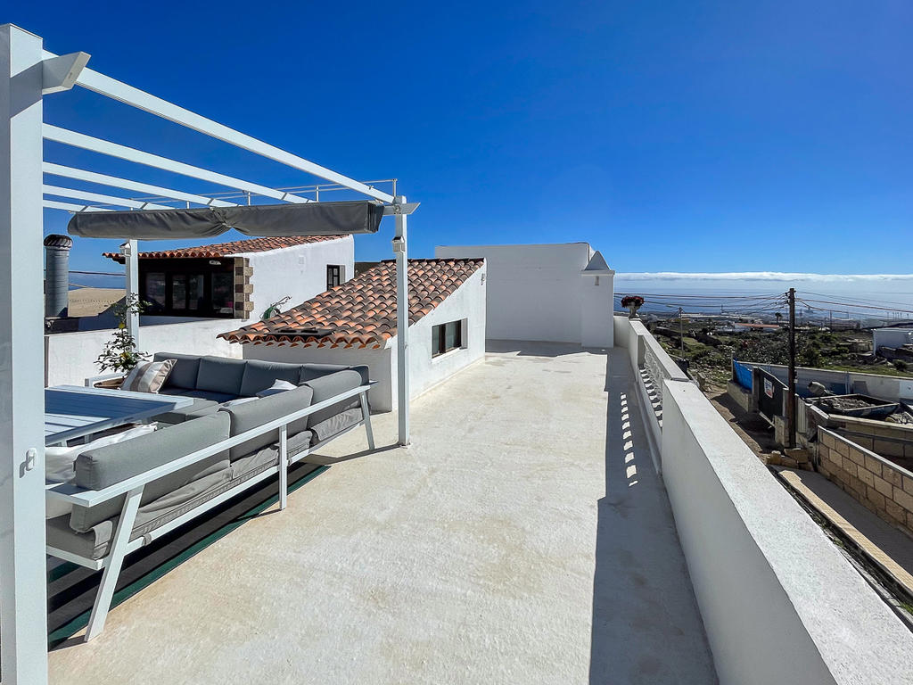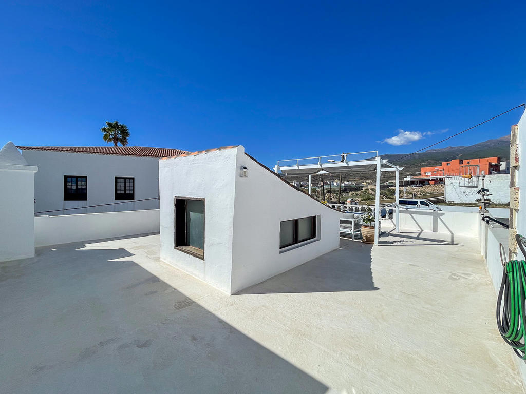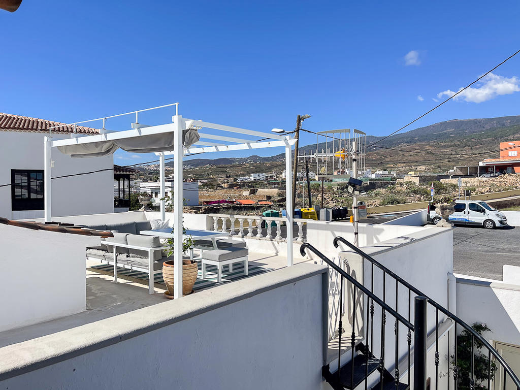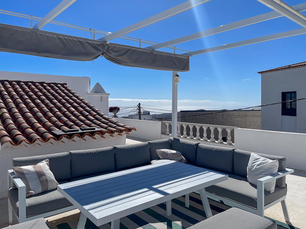 På den rymliga takterrassen finns en härlig chill out-yta med utsikt mot både Teide och havet. Här finns plats både för att sola, umgås med nära och kära. och varför inte njuta en utomhusbio under de varma sommarkvällarna? Detta är den perfekta platsen för långa kvällar med vänner och familj. Här uppe finns också ett tvättrum som kan användas som gym eller kontor, eller till och med inredas som ett gästrum.