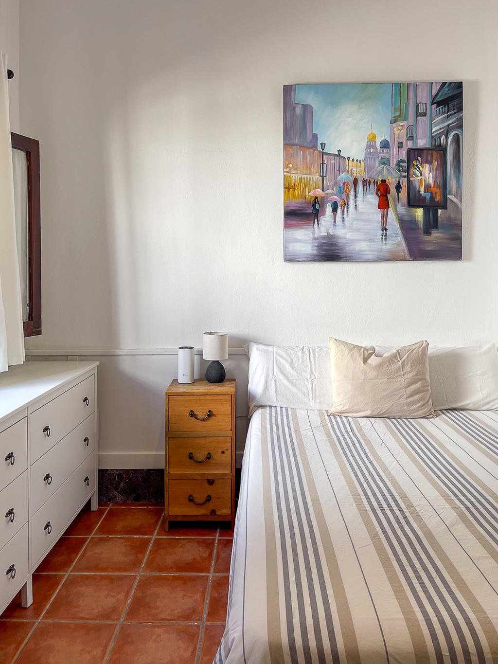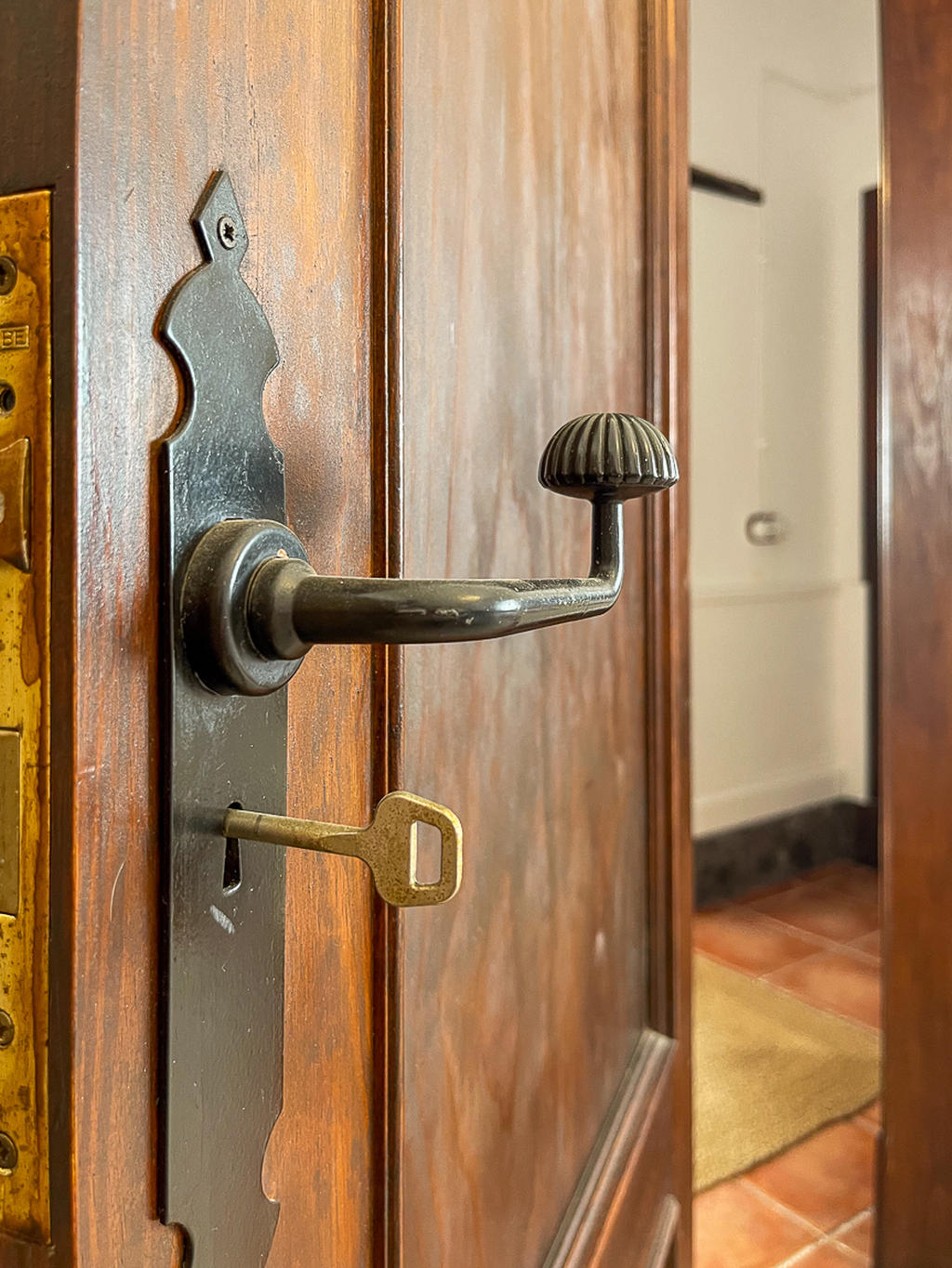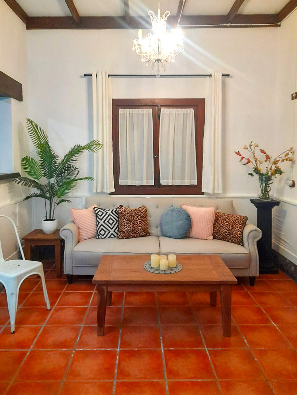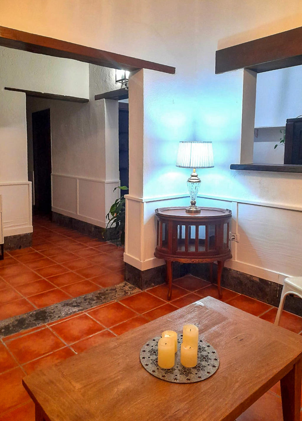 Huset är fristående och erbjuder gott om utrymme, högt i tak och vackra materialval: synliga träbalkar i taket, massiva dörrar, socklar i basaltsten och klassiska porslinsströmbrytare i gammaldags stil – allt samlat i en unik, kanarisk atmosfär. Här märks att varje del av huset är genomtänkt – både materialval och design har valts med känsla och respekt för husets själ.