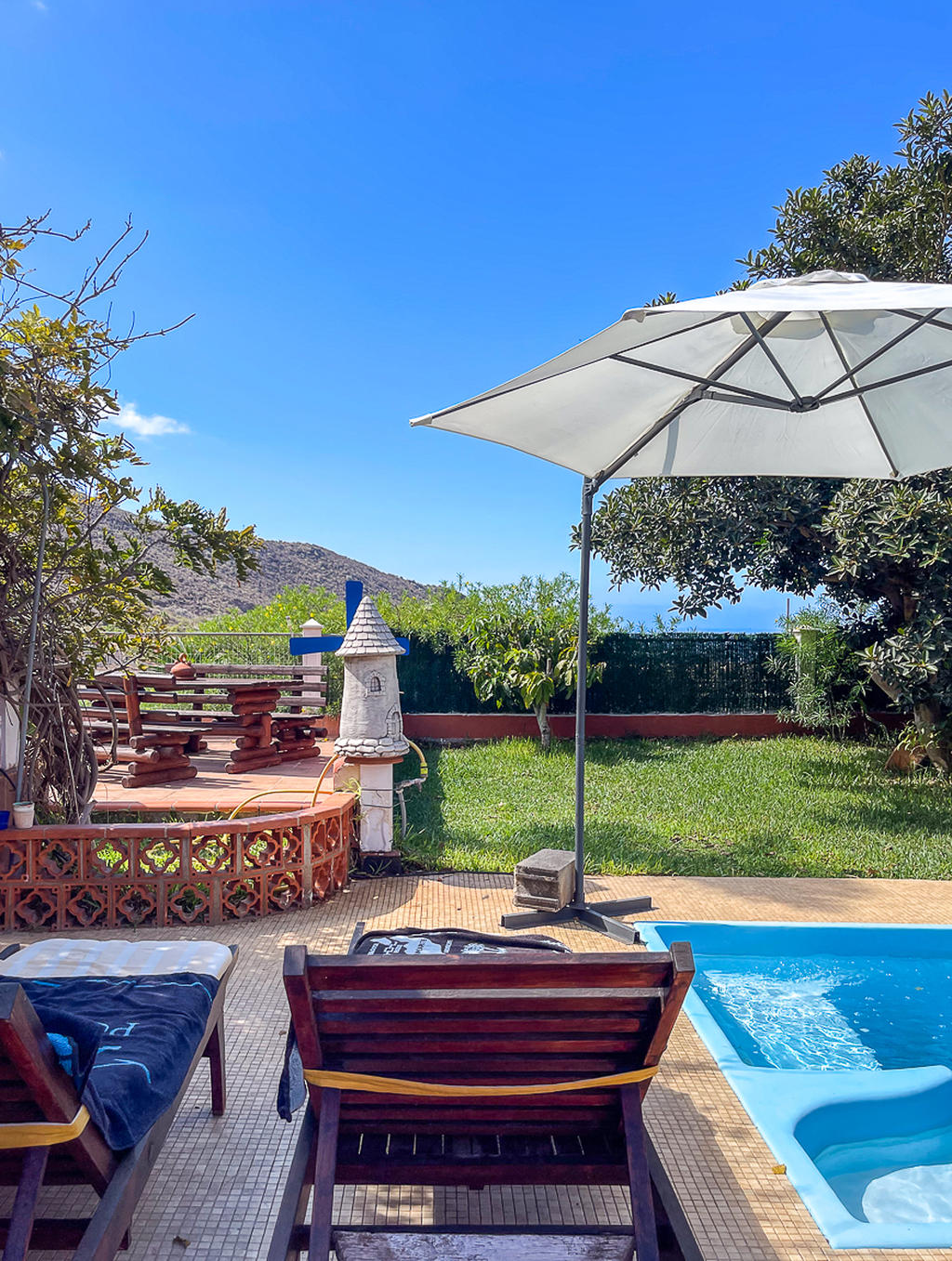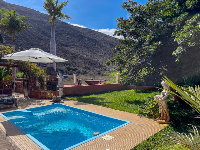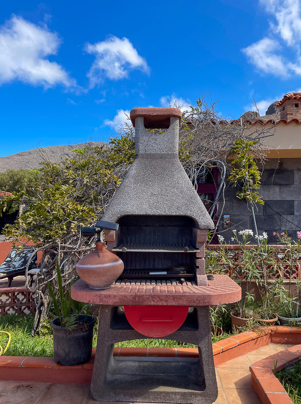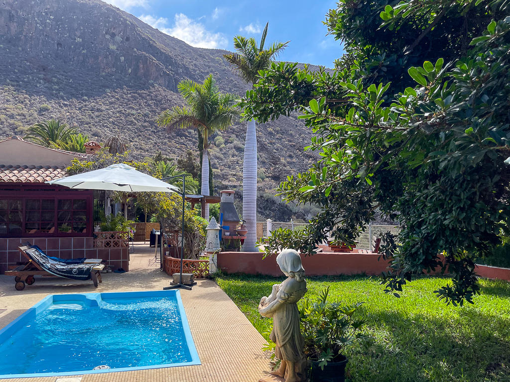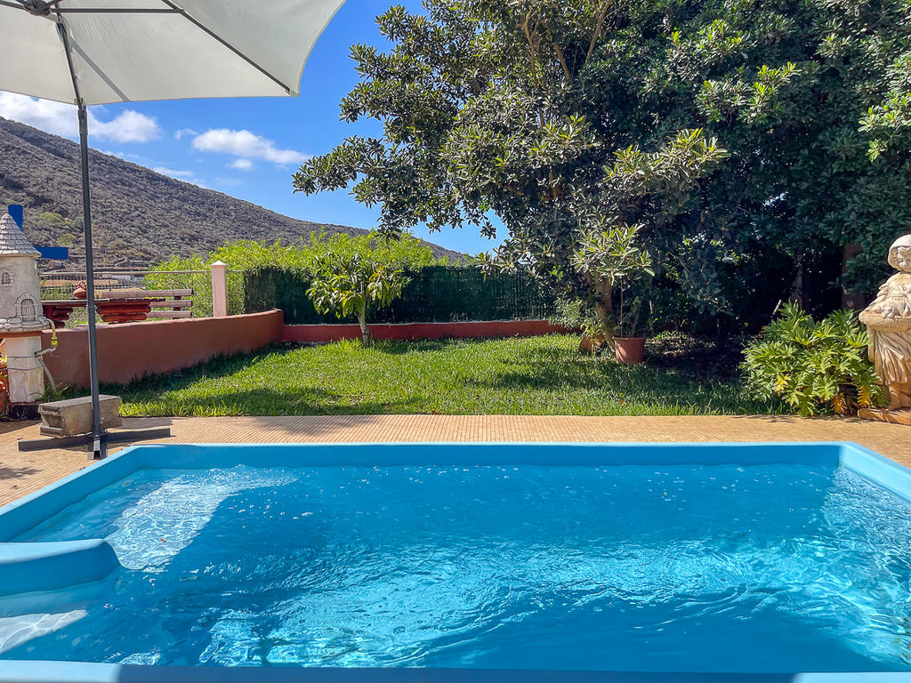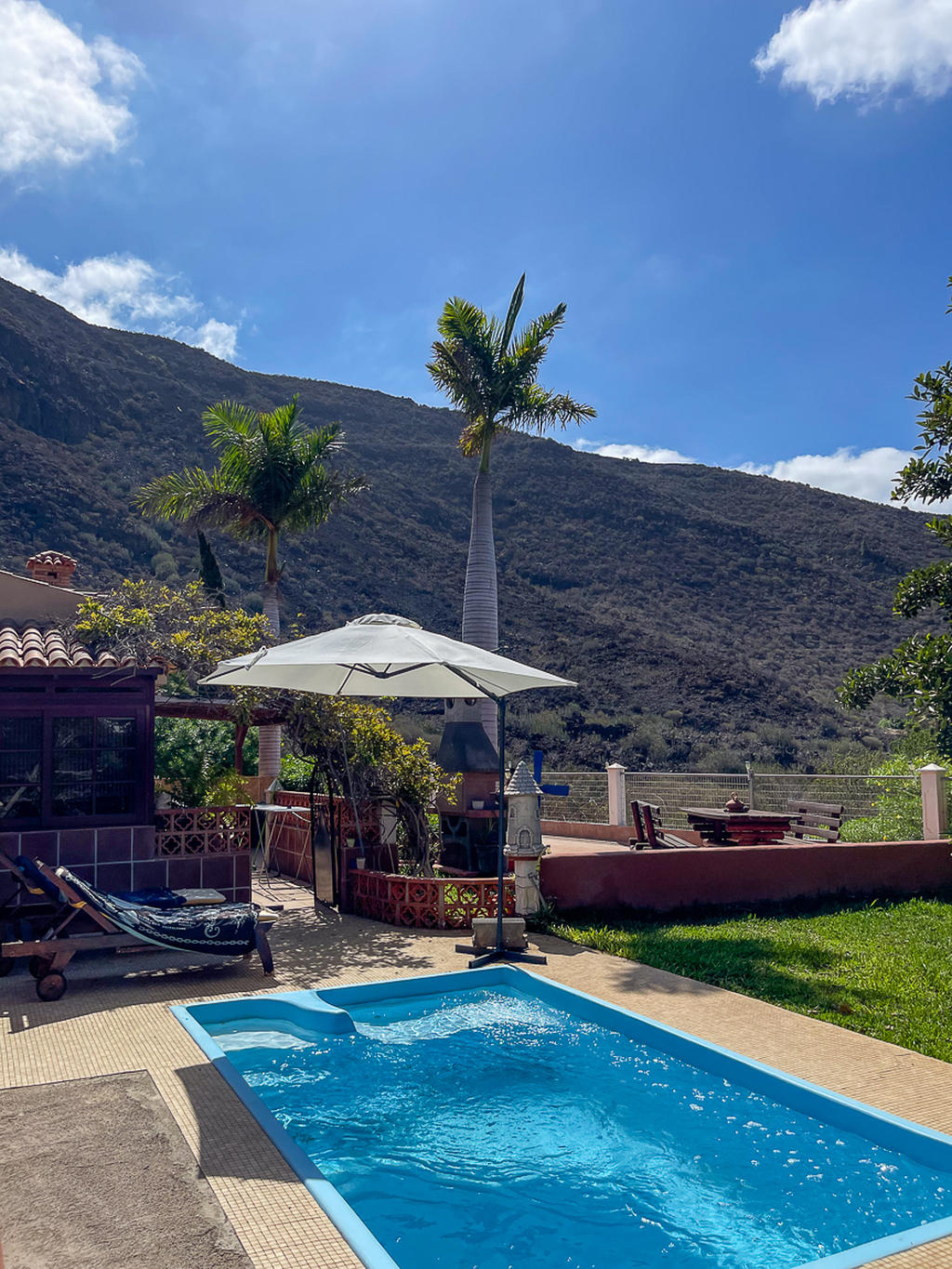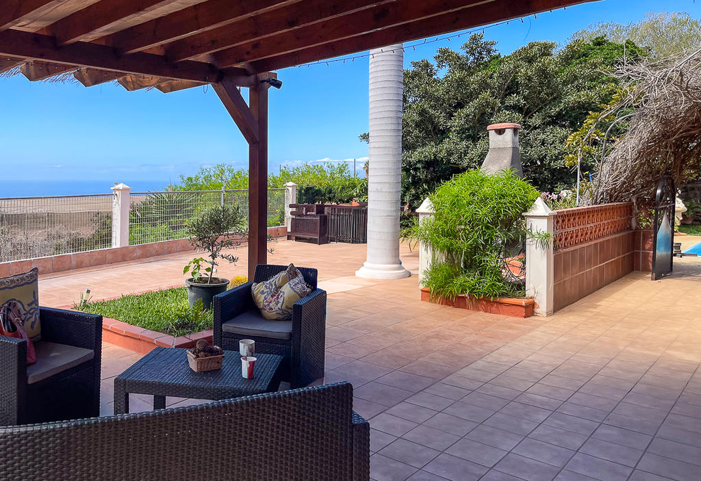 Från den stora terrassen med poolområde har du utsikt över havet – en idealisk plats för middagar i solnedgången, grillkvällar med vänner eller lugna stunder i skuggan. Här är tyst och lugnt, och ger en känsla av total avskildhet. Detta trots att huvudvägen ner till Los Gigantes bara är några minuter bort, och längs den är du nere i centrala Los Gigantes på mindre än 10 minuter. Vägen fram till huset, samt hela uppfarten är asfalterad för att minimerat risken för damm.