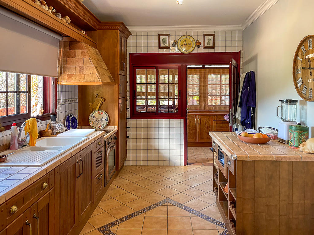 Invändigt bjuder villan på ett ljust och trivsamt sällskapsrum med öppen planlösning, där kvalitetsmaterial och stilrena detaljer skapar en varm och inbjudande känsla. Köket inbjuder till matlagning med sina stora ytor, och här finns även ett stort tvättrum med fönster som vetter ut mot poolen.