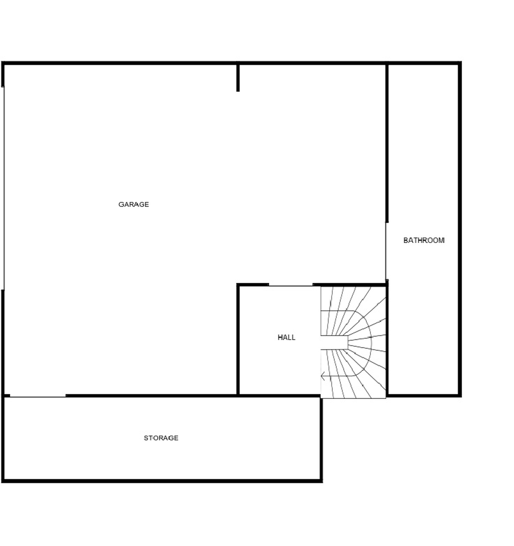 Utöver detta finns ett privat garage en trappa ner från entréplan på cirka 40 m², med plats för flera fordon och förråd. Bostaden har gasvärme och öppen spis.