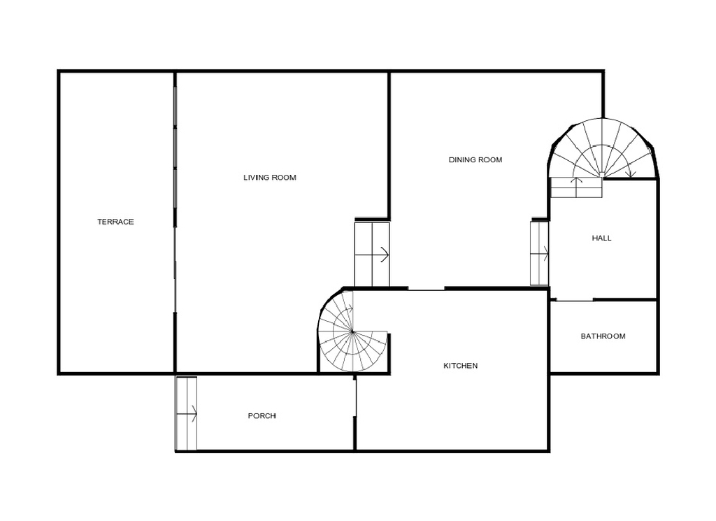 Det finns bland annat en privat 53 m² uteplats på framsidan av huset och en terrass med grillplats med utgång från vardagsrummet.