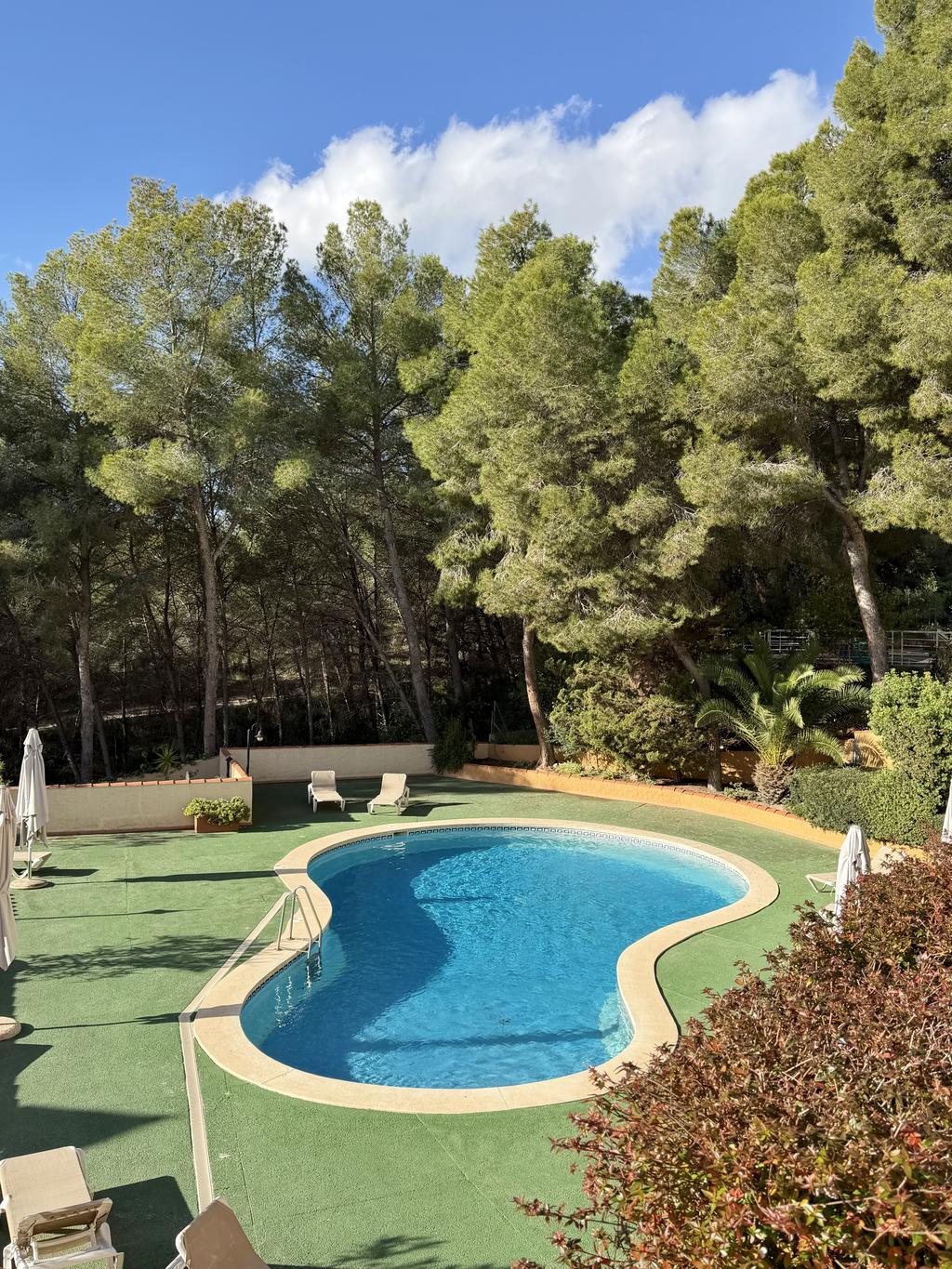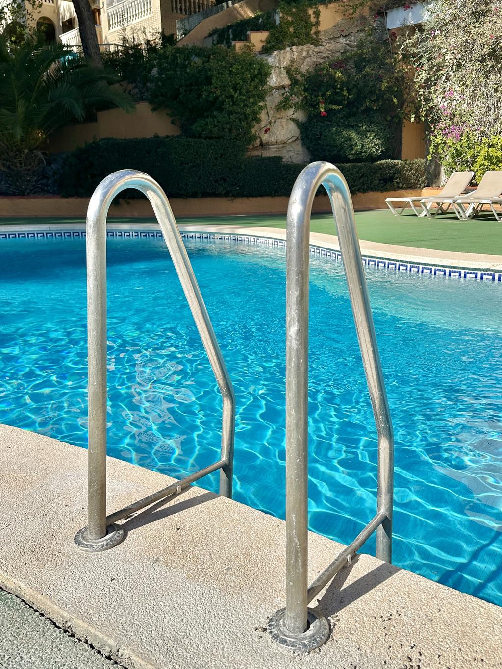 De gemensamma trädgårdsområdena och det välskötta pool-området är ett ytterligare plus med boendet.