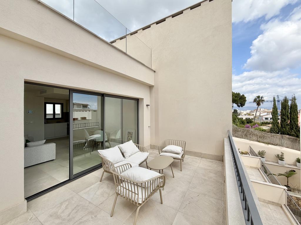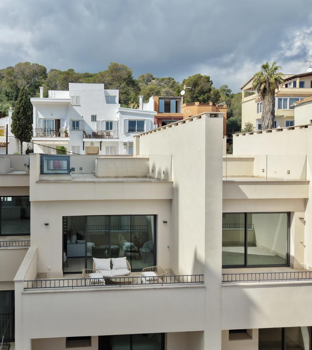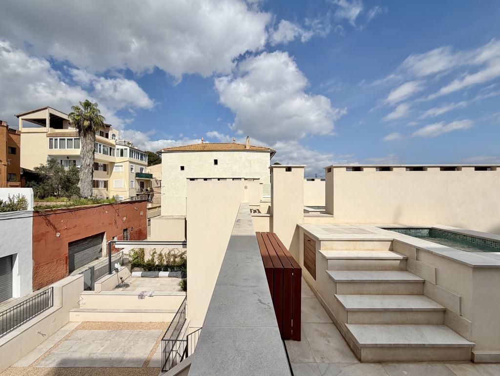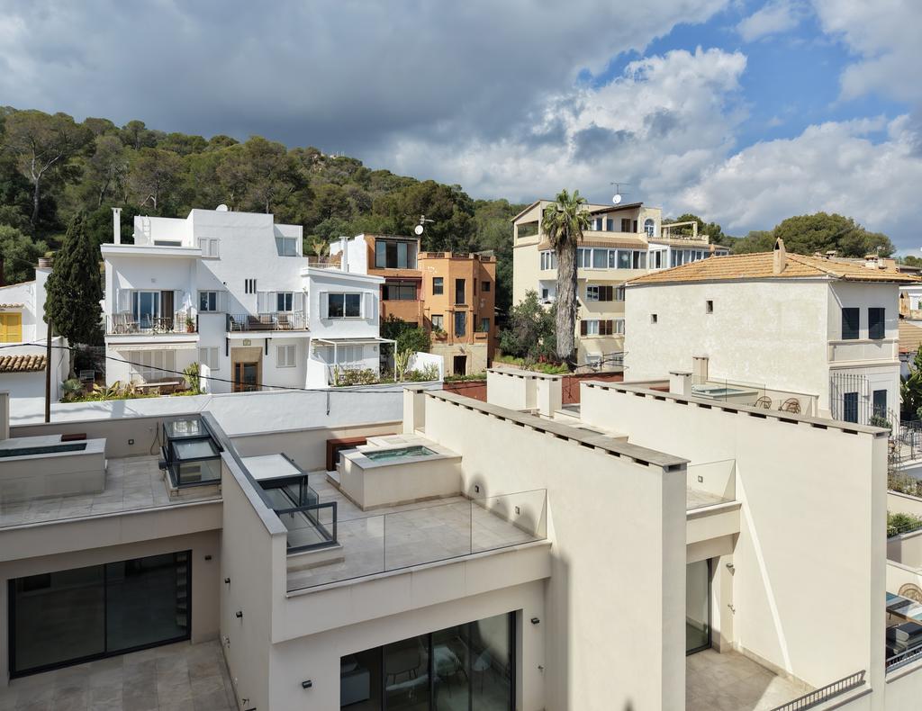 Högst upp finns en takterrass med plunge-pool där du kan njuta av en vidsträckt utsikt över Palma-bukten – en perfekt plats för både lugna morgnar och kvällar med vänner.