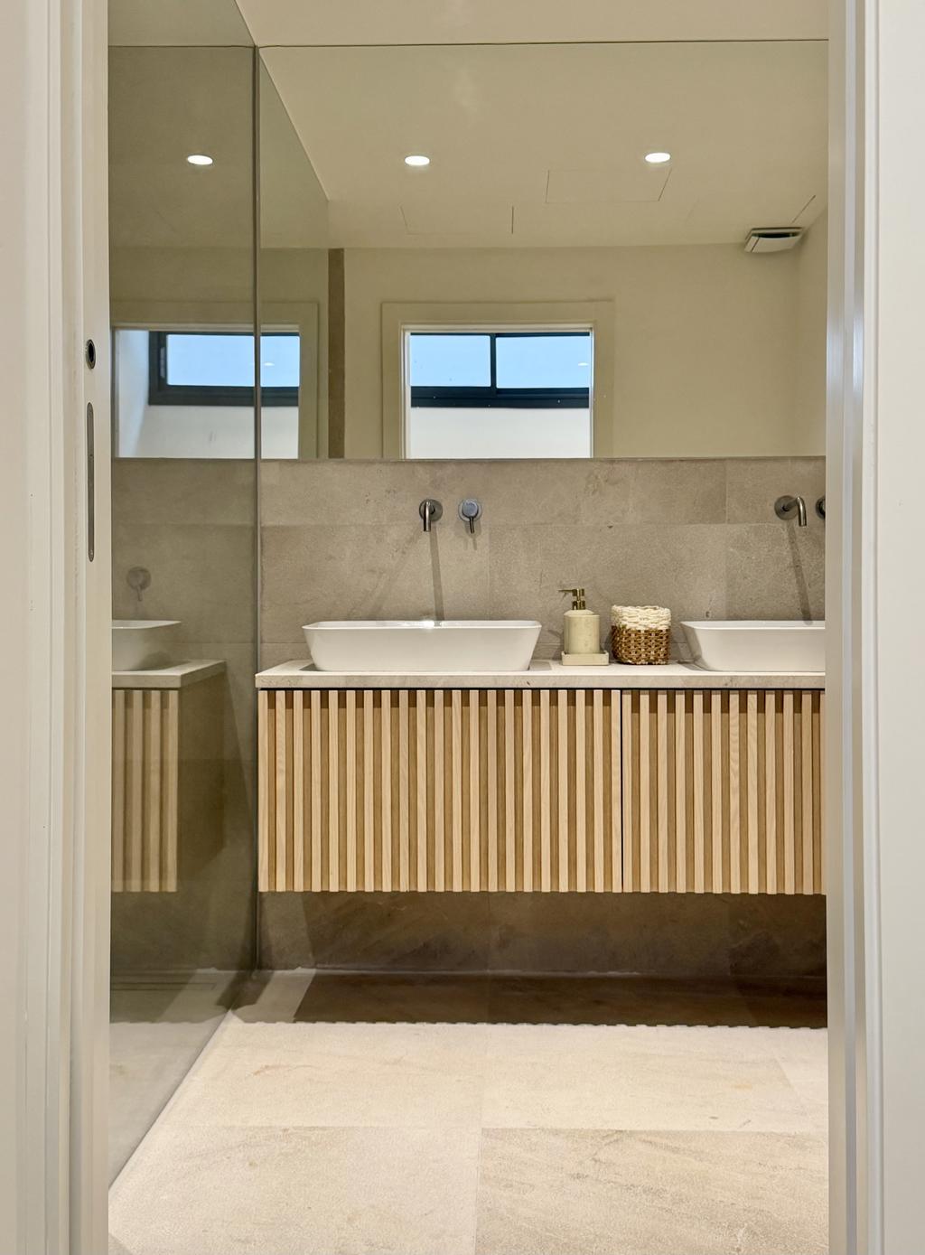 Arkitekturen präglas av en elegant balans mellan modern formgivning och klassiska medelhavsinfluenser. Genomtänkta materialval och gediget hantverk genomsyrar hela hemmet och skapar en sofistikerad men samtidigt varm atmosfär.