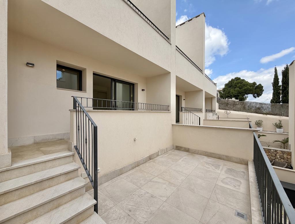 Välkommen till ett stilfullt radhus i eftertraktade El Terreno – ett område som kombinerar lugnet från grönskande omgivningar med närheten till Palmas puls.