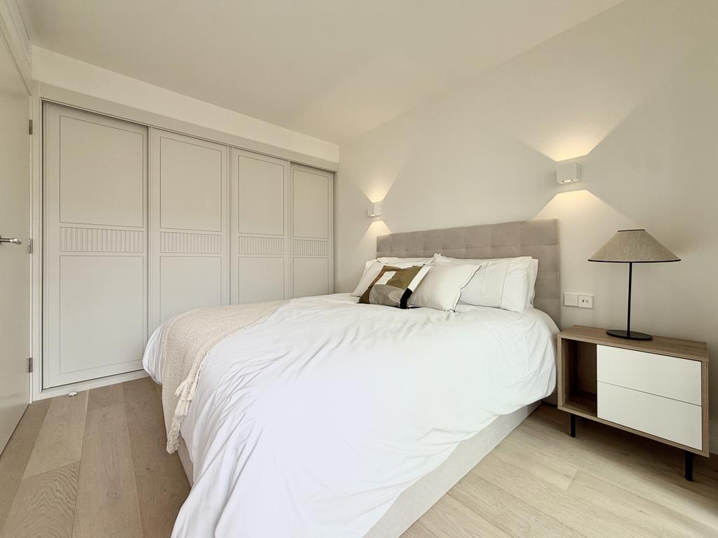 Bostaden rymmer tre sovrum och minst två badrum, varav ett en-suite. Det öppna vardagsrummet smälter samman med ett fullt utrustat kök och skapar en social och ljus samlingspunkt i hemmet. Dessutom ingår en parkeringsplats i garage under mark.