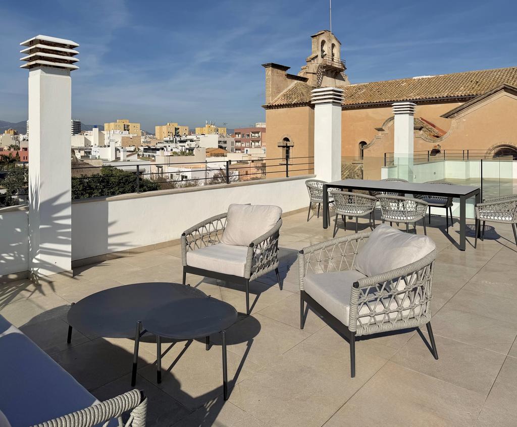 Högst upp väntar en generös takterrass med vidsträckt utsikt över havet, stadens silhuett och kyrkan i El Molinar. Här skapas en privat oas för avkoppling eller umgänge under bar himmel. En balkong kompletterar uteytorna och suddar ut gränsen mellan inne och ute.